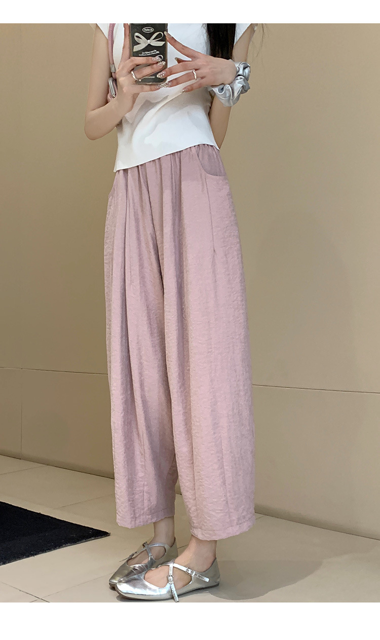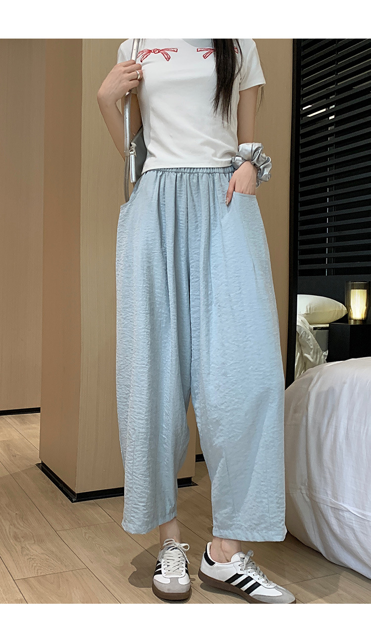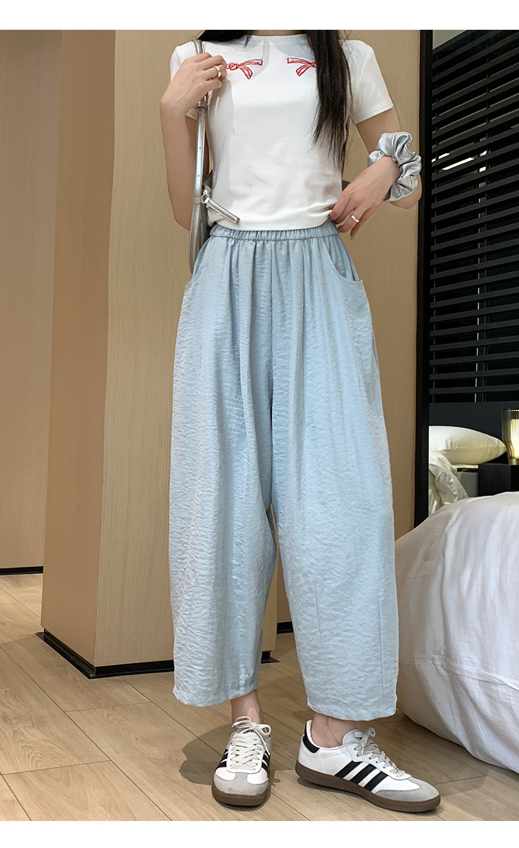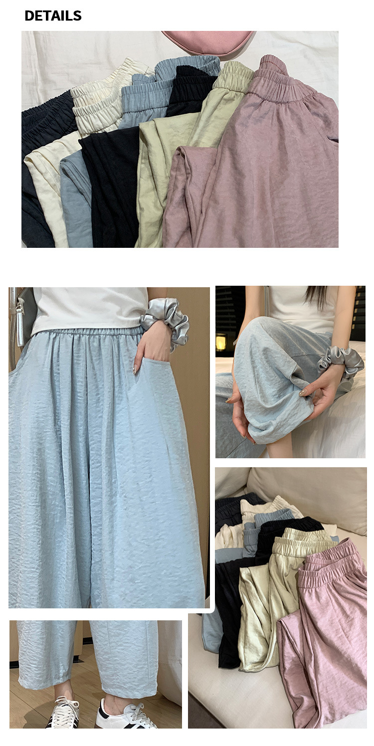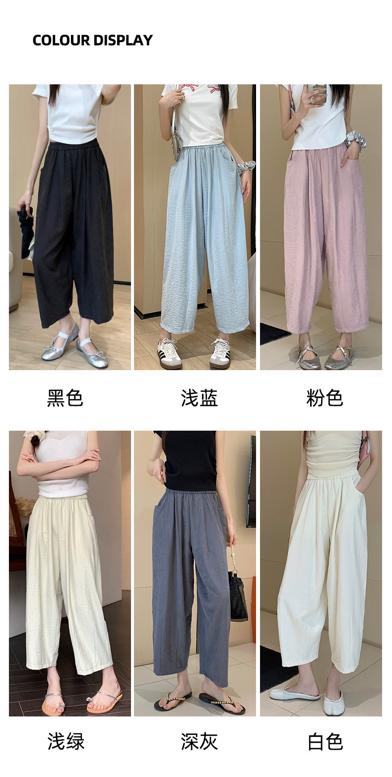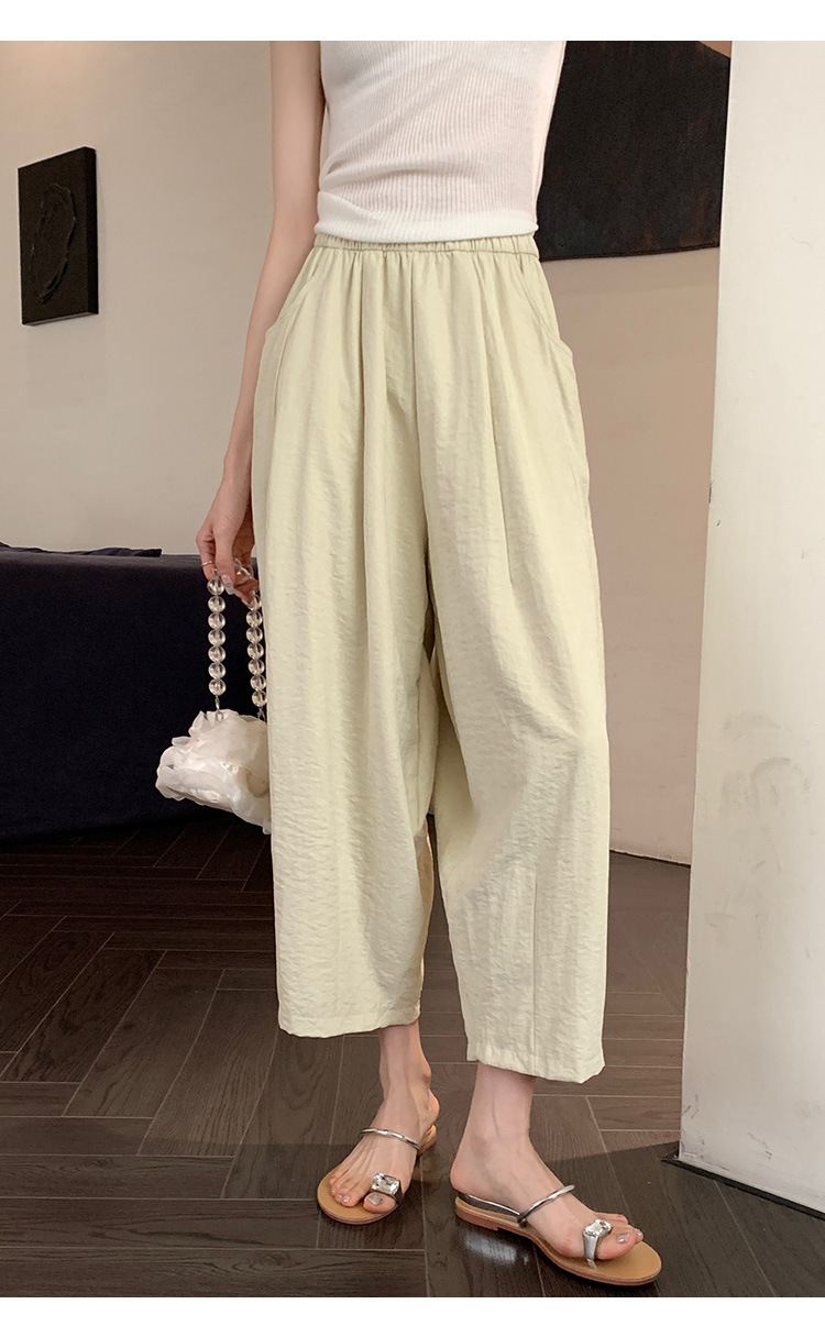 2024春夏新款女高腰显瘦九分哈伦休闲裤薄款醋酸绒褶皱凉感萝卜裤