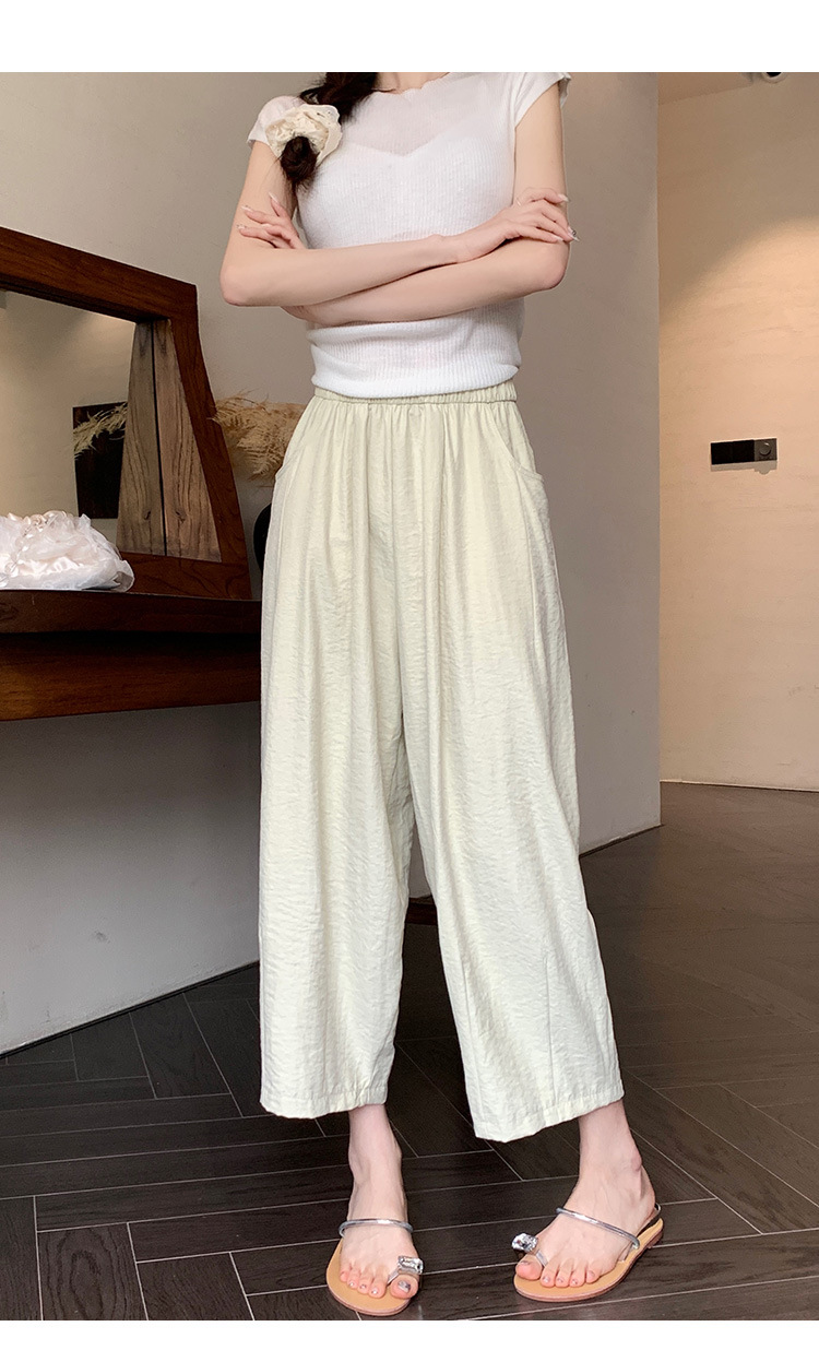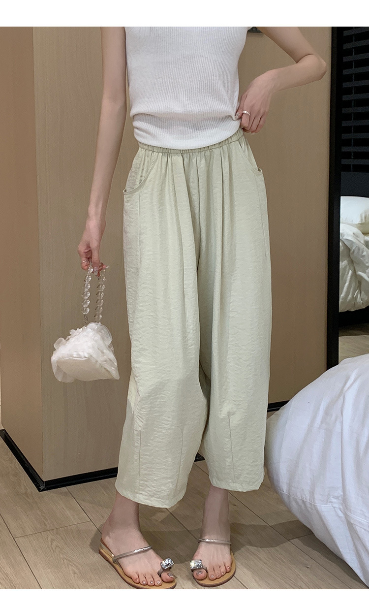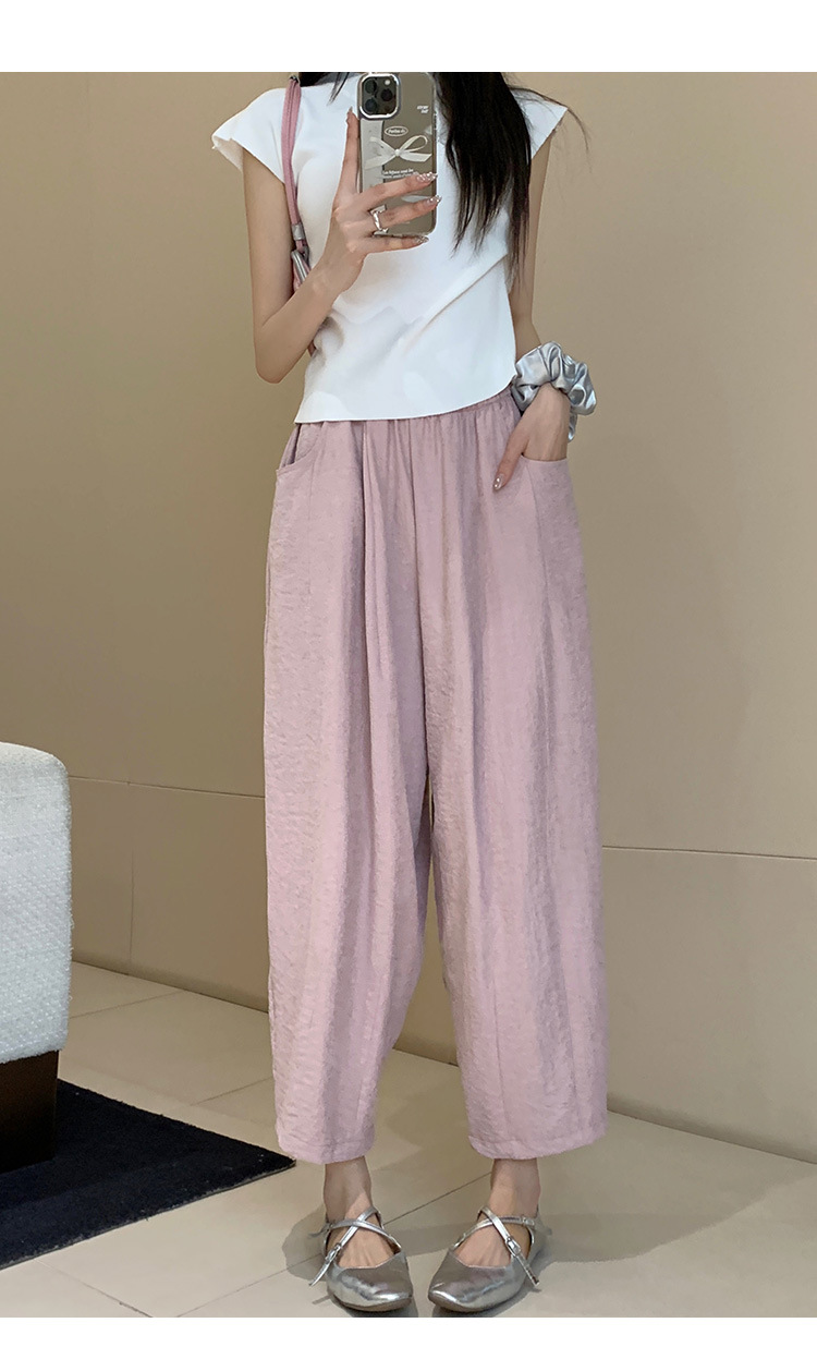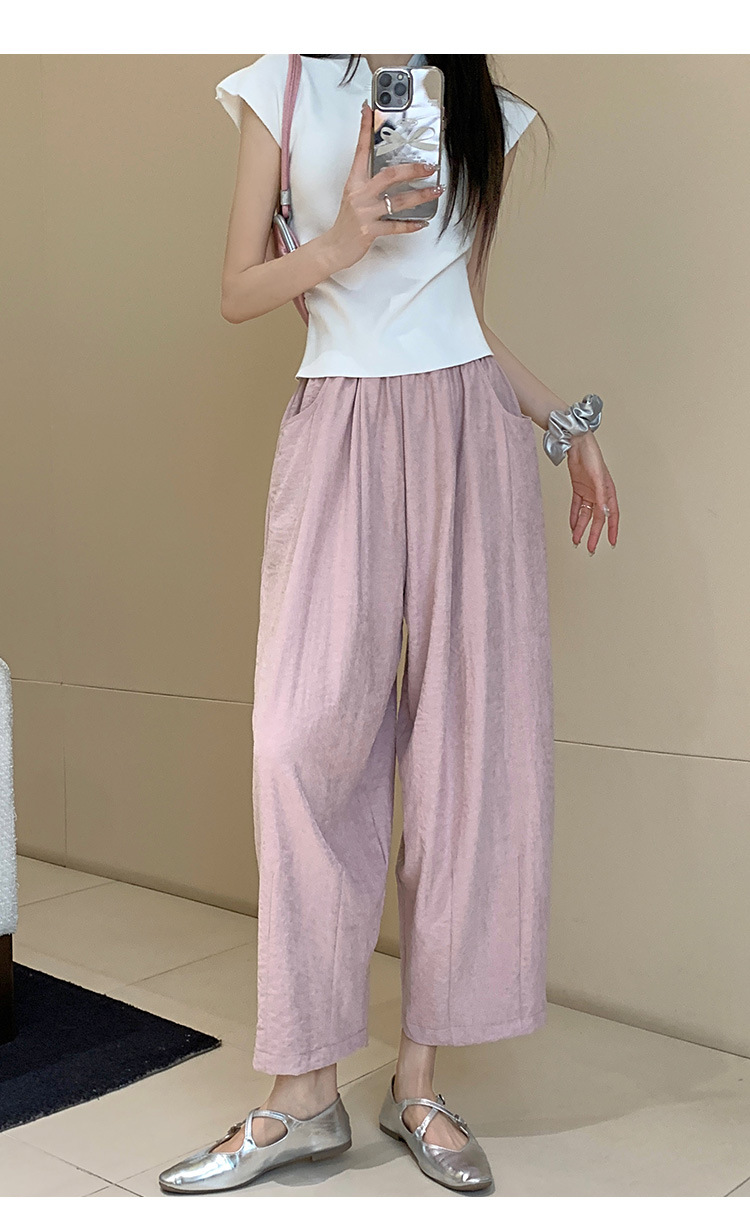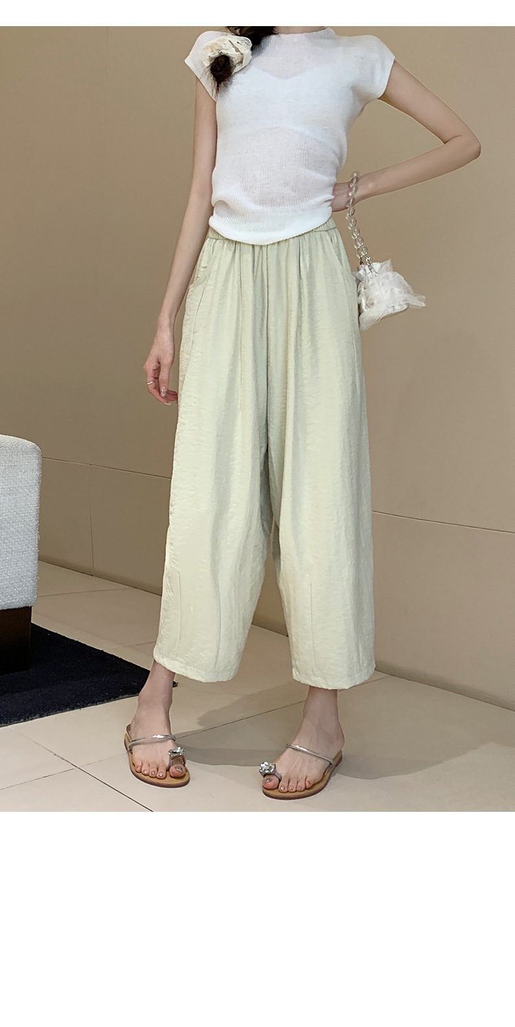 2024春夏新款女高腰显瘦九分哈伦休闲裤薄款醋酸绒褶皱凉感萝卜裤