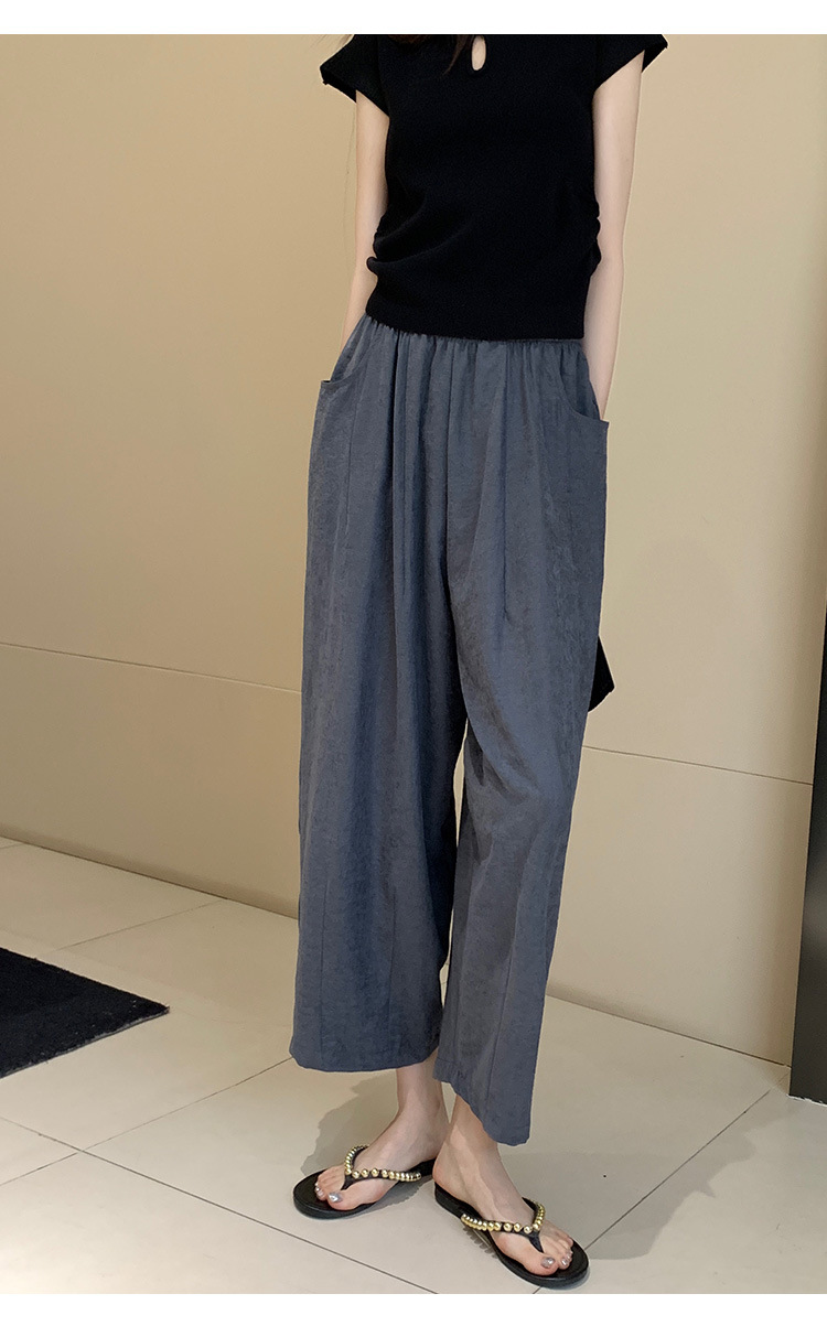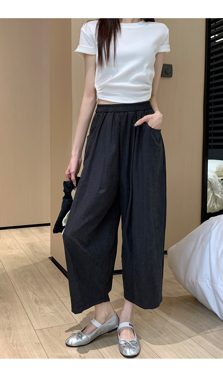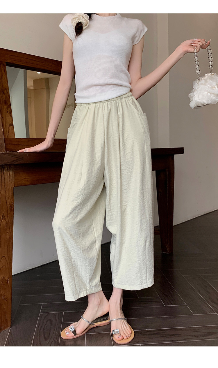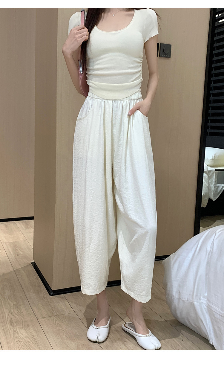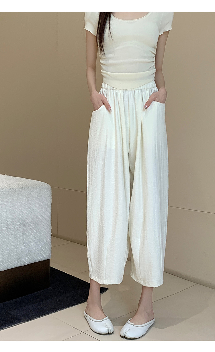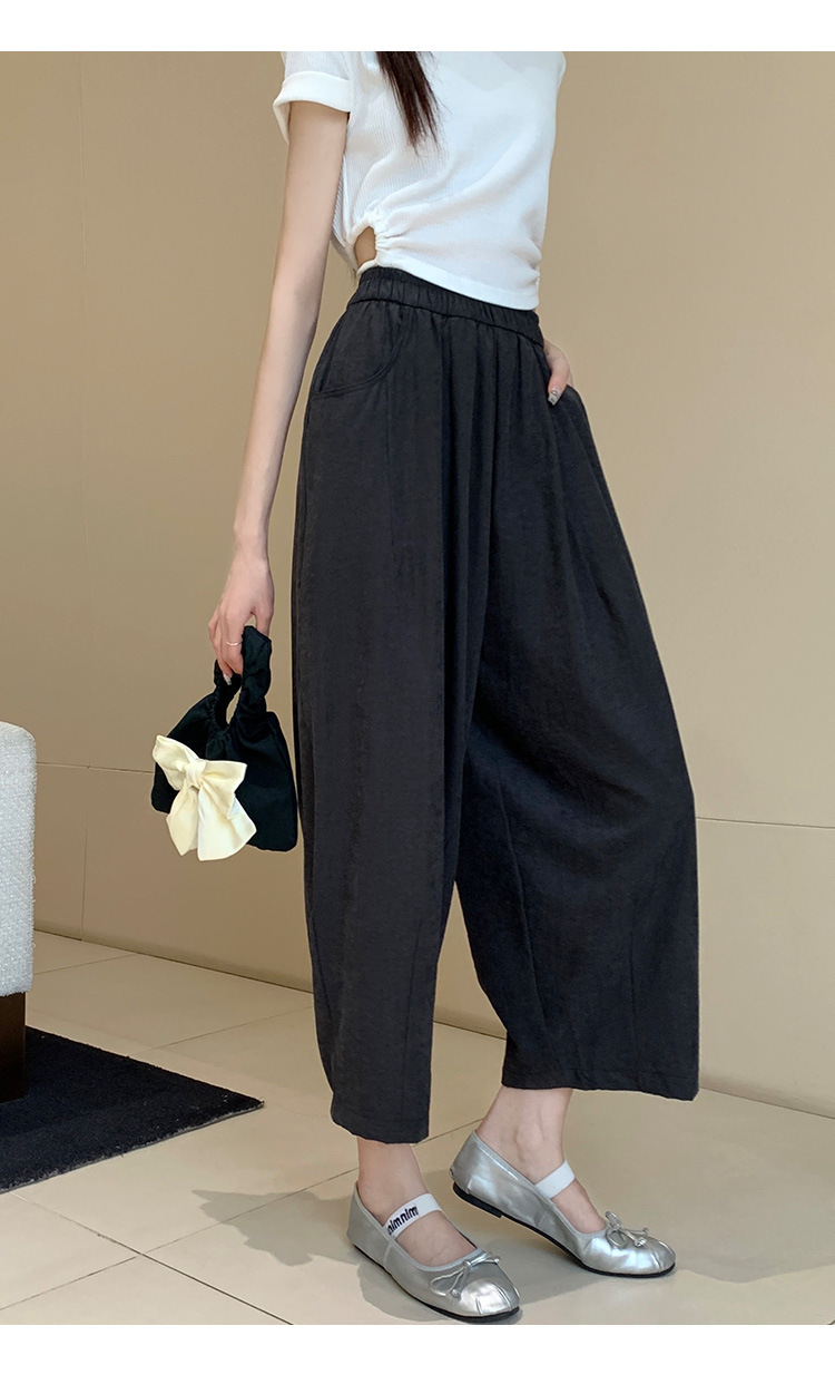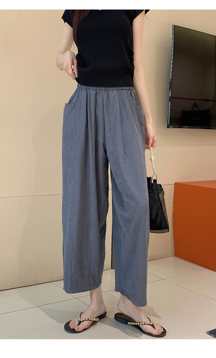 2024春夏新款女高腰显瘦九分哈伦休闲裤薄款醋酸绒褶皱凉感萝卜裤