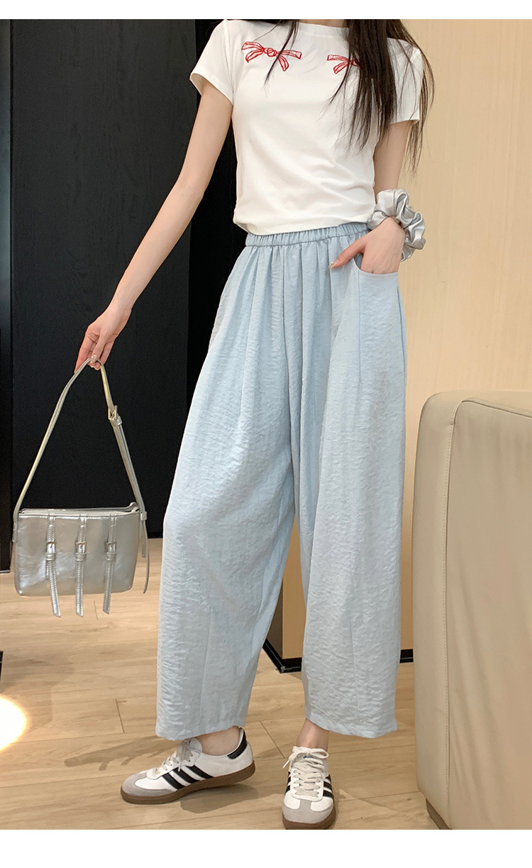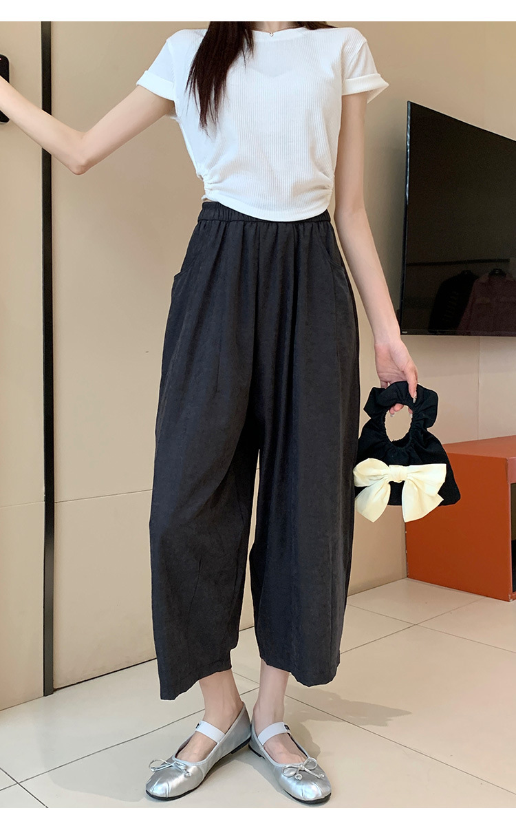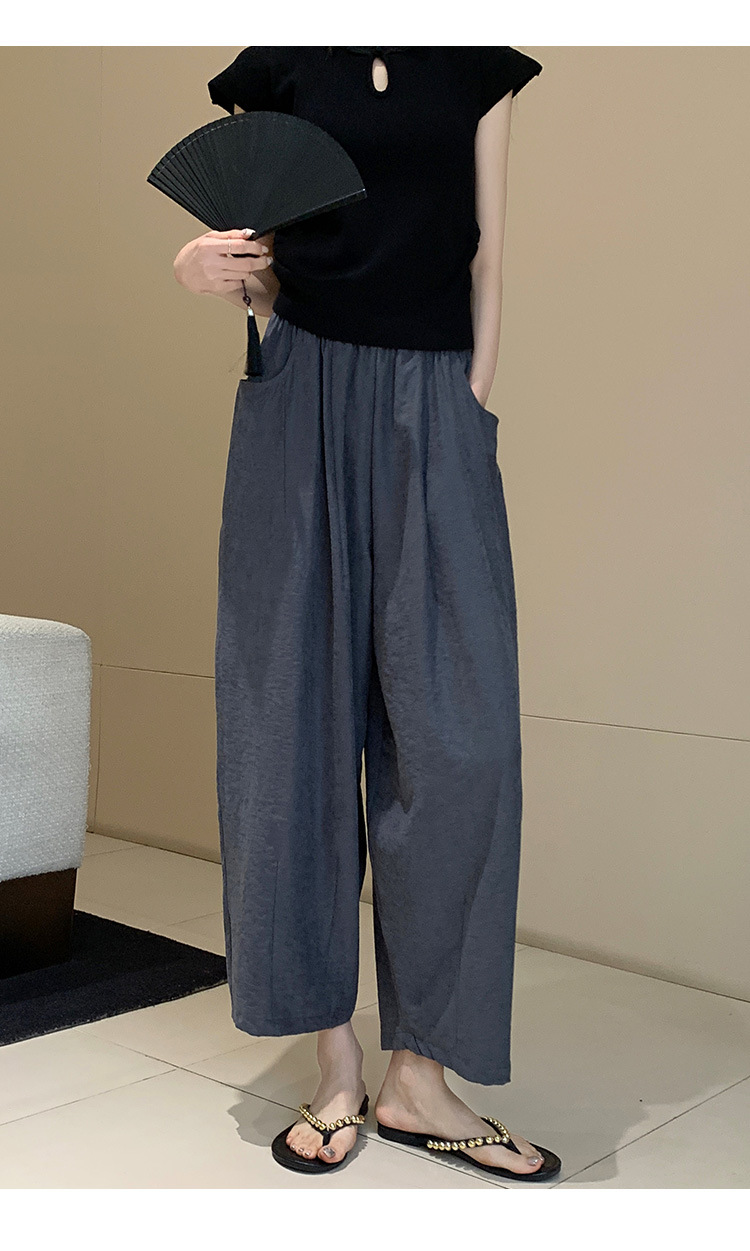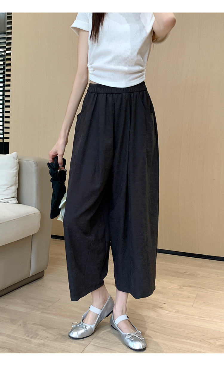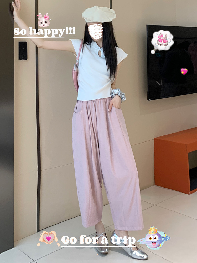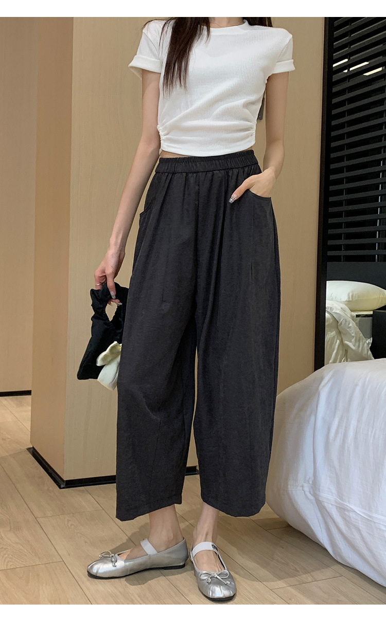 2024春夏新款女高腰显瘦九分哈伦休闲裤薄款醋酸绒褶皱凉感萝卜裤
