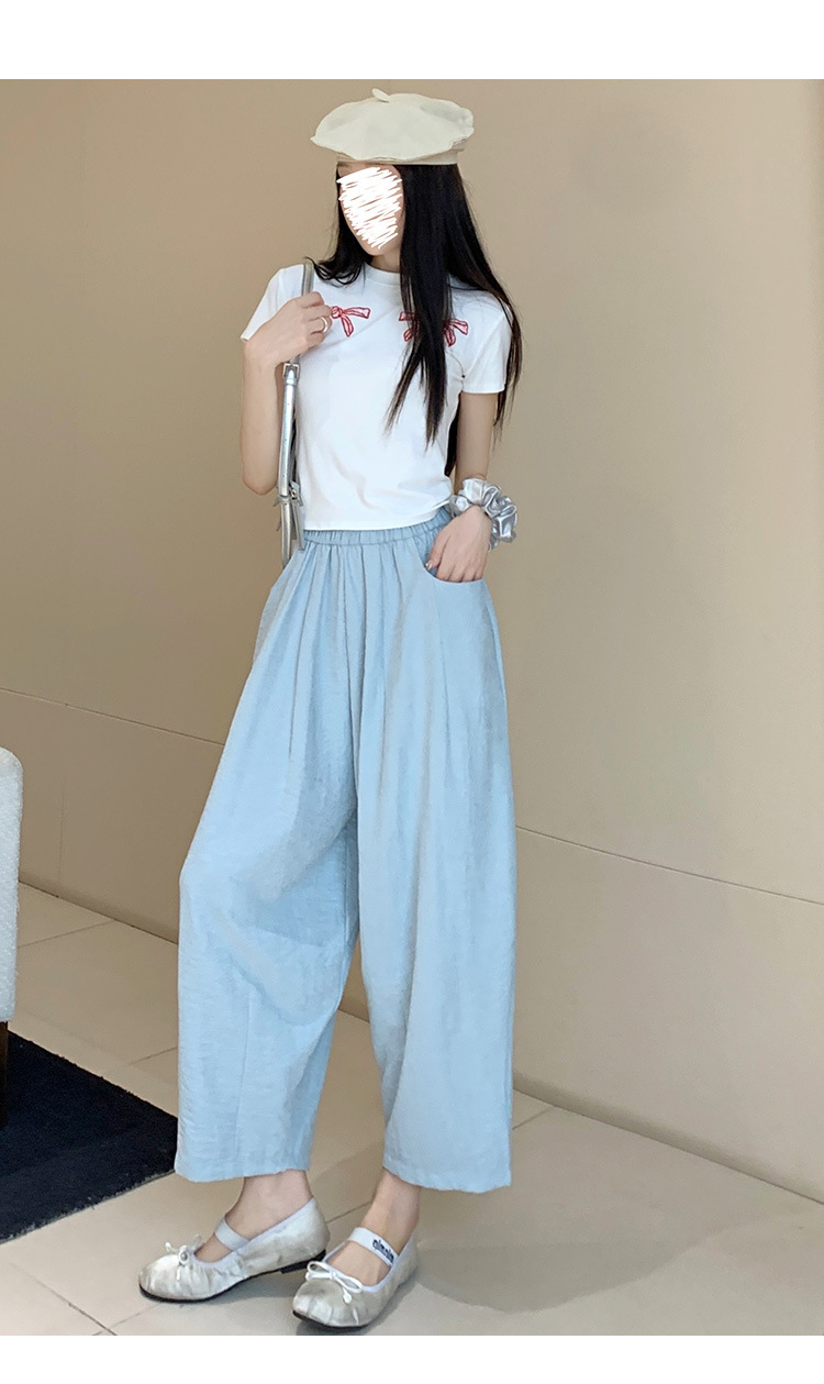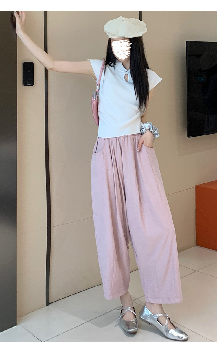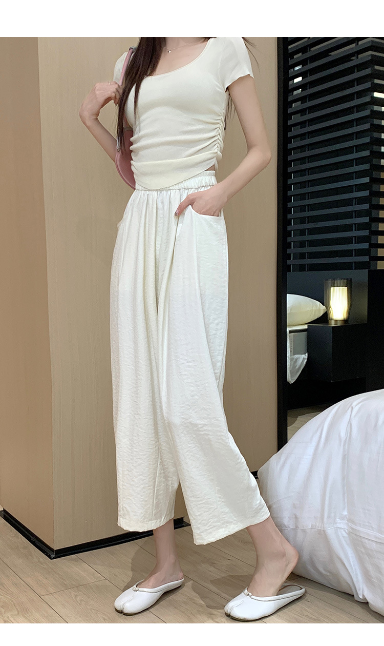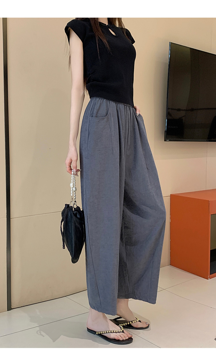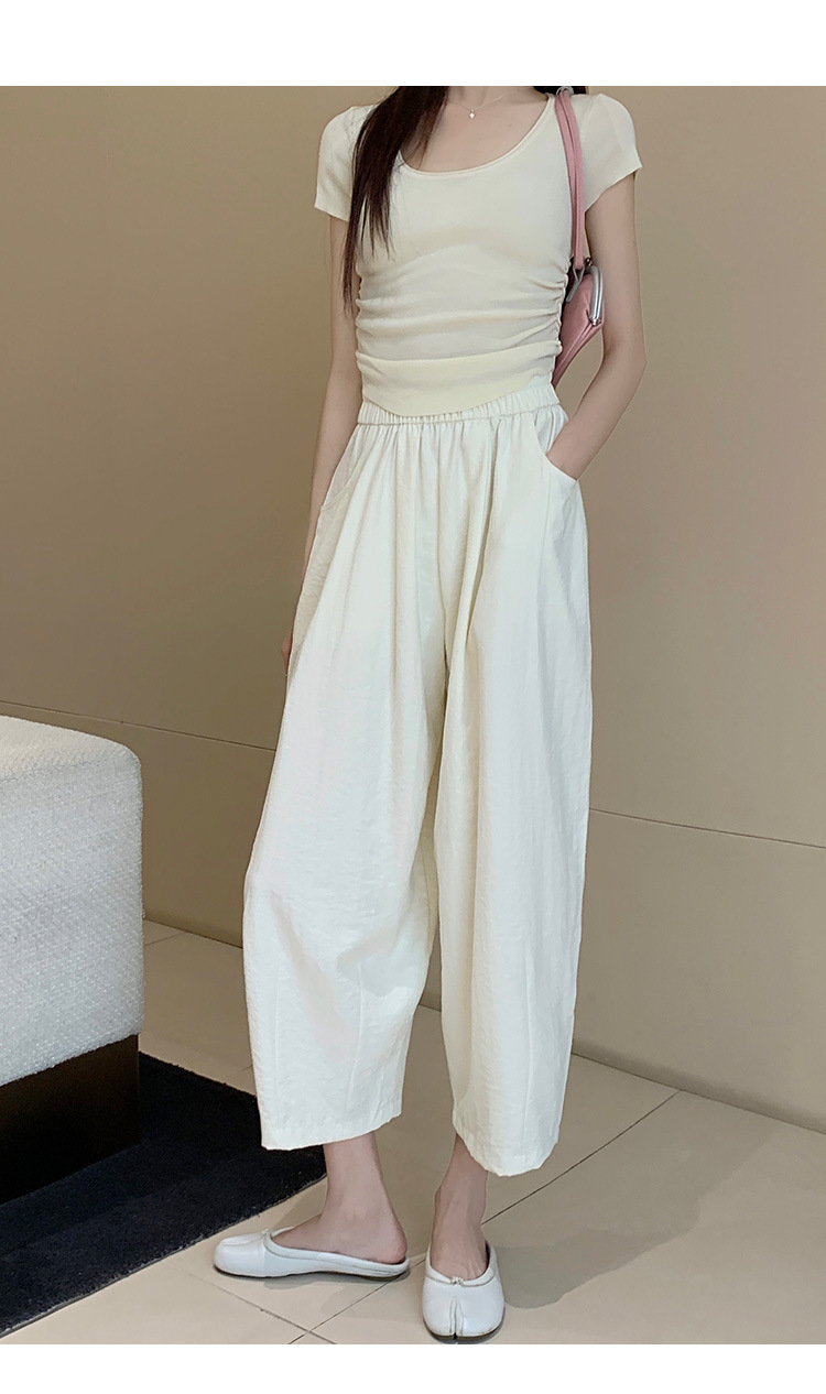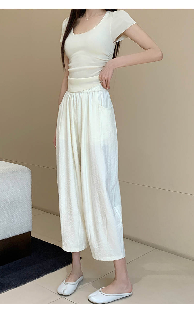 2024春夏新款女高腰显瘦九分哈伦休闲裤薄款醋酸绒褶皱凉感萝卜裤
