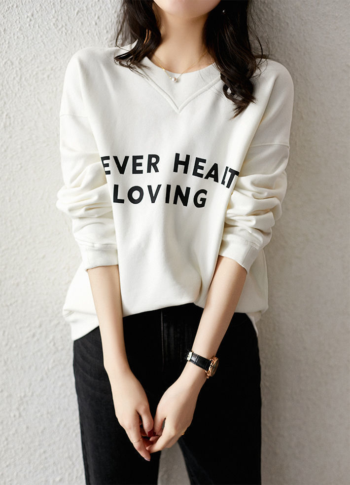 口袋卫衣女春秋圆领韩版简约白色纯棉宽松显瘦印花字母套头上衣女