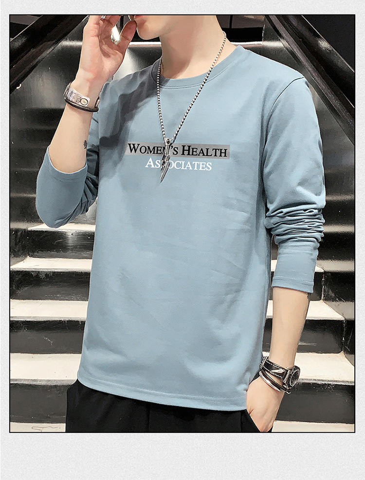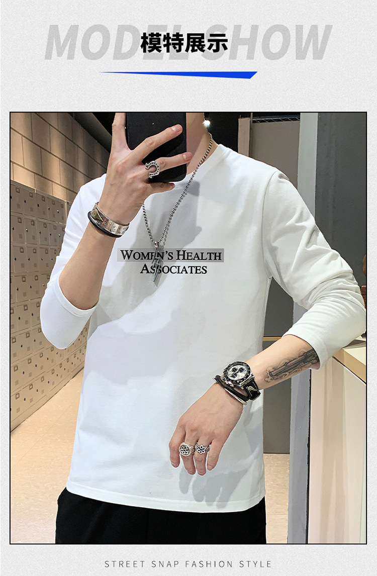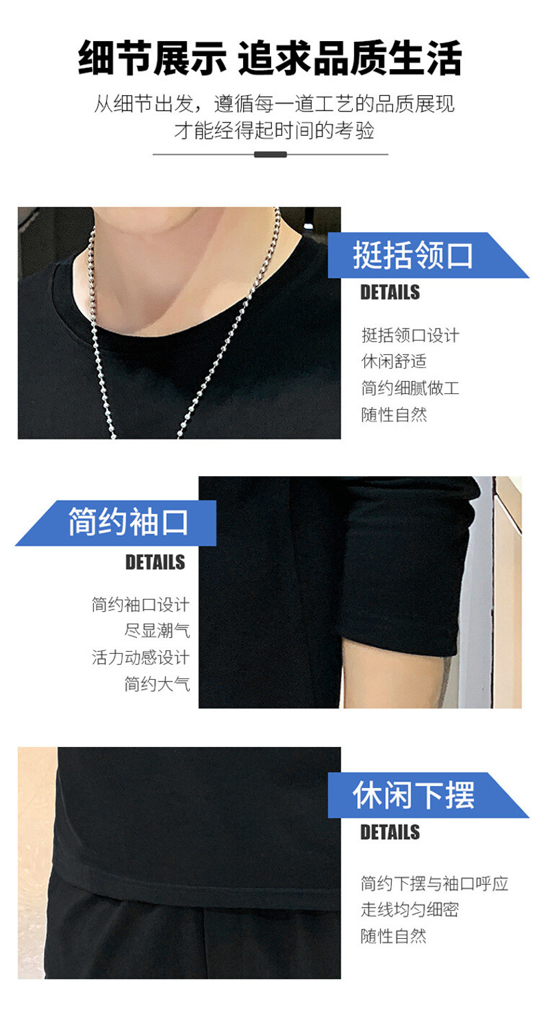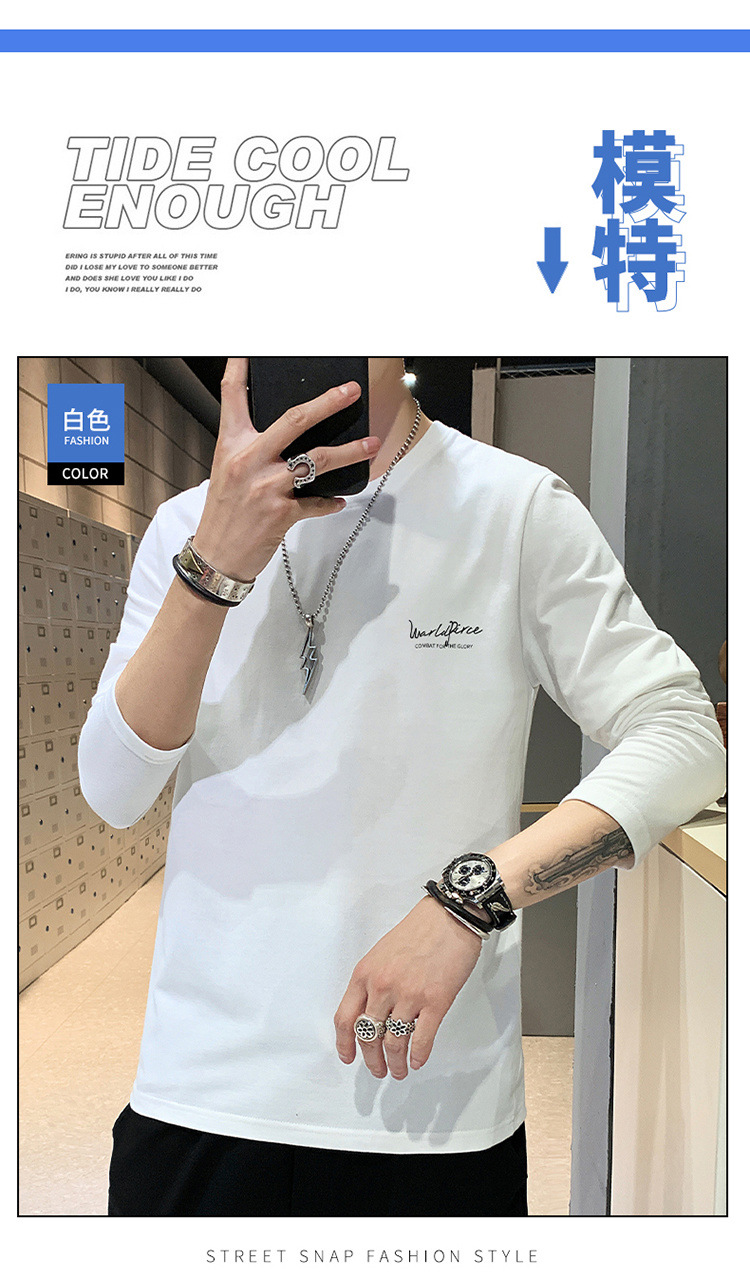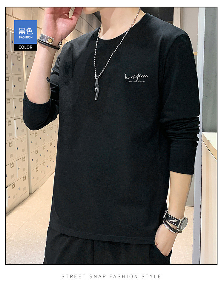全棉长袖T恤男士春秋新款圆领宽松百搭卫衣青年帅气打