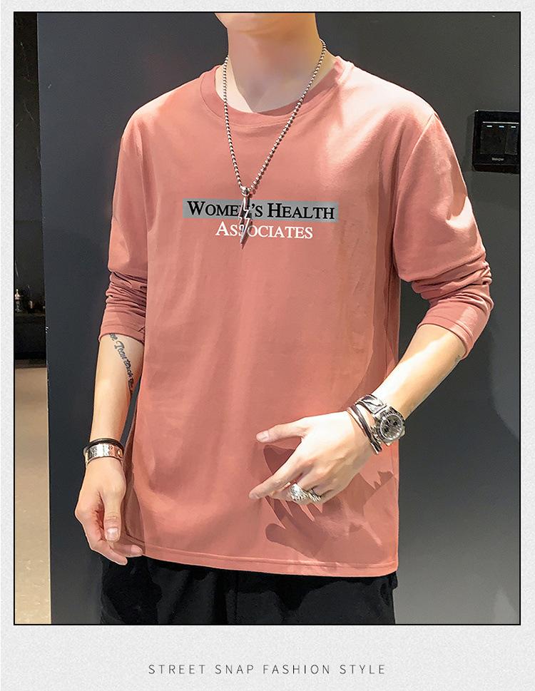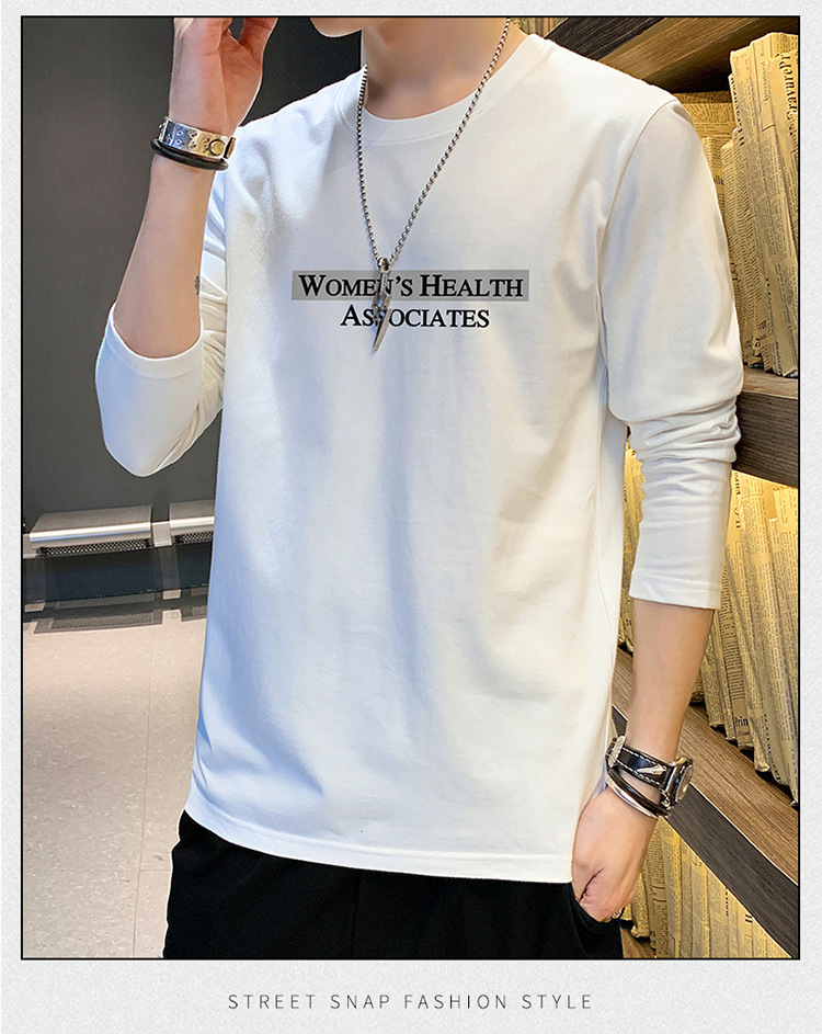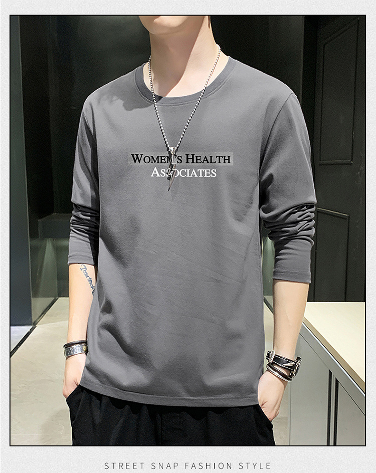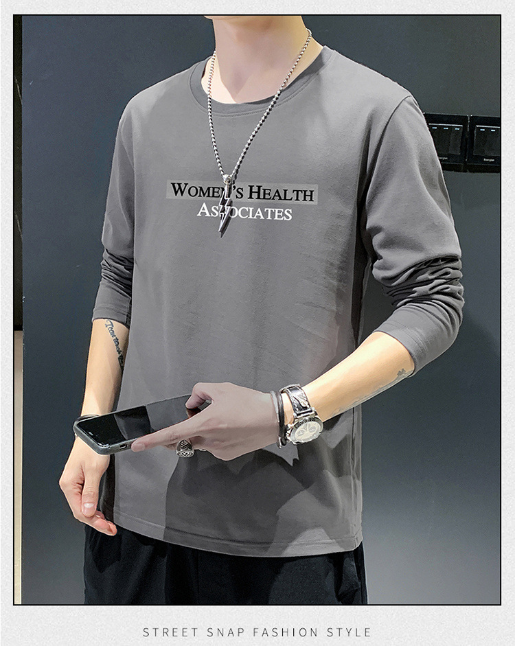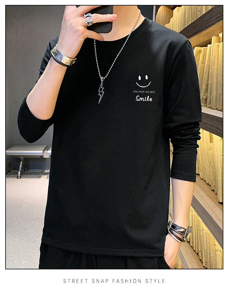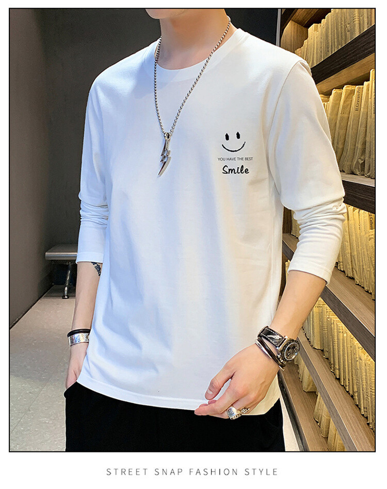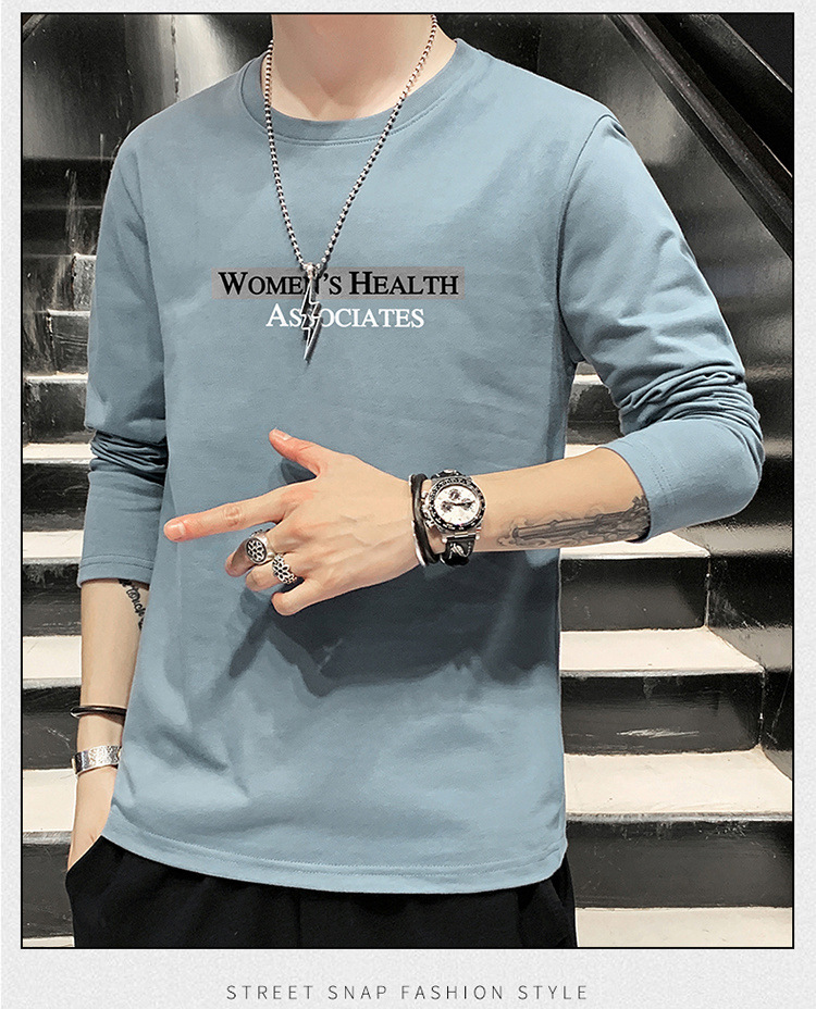 全棉长袖T恤男士春秋新款圆领宽松百搭卫衣青年帅气打