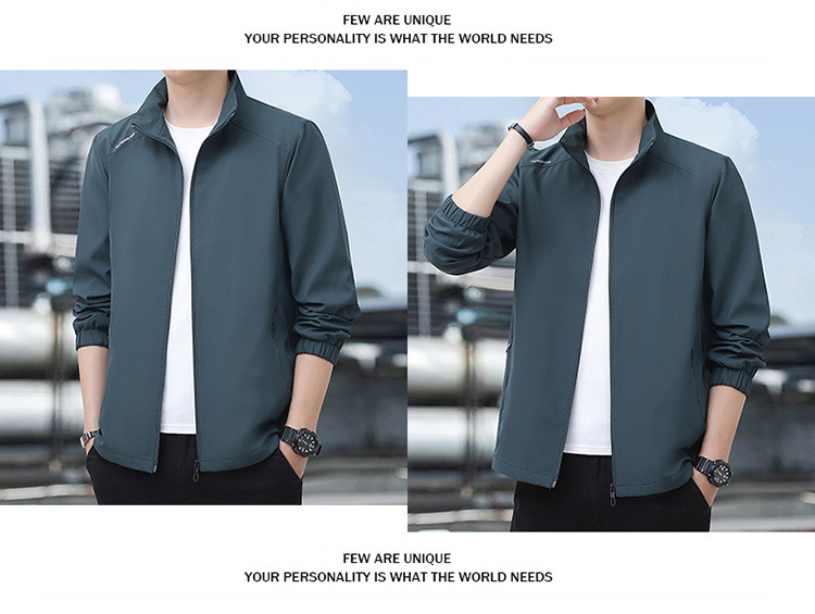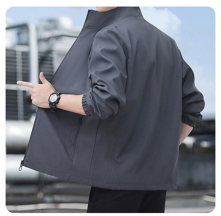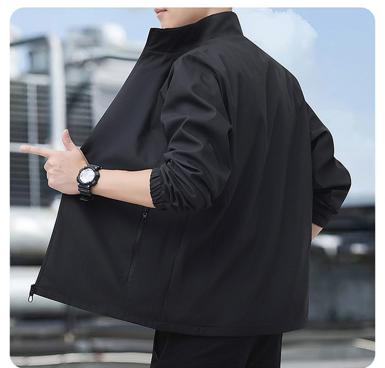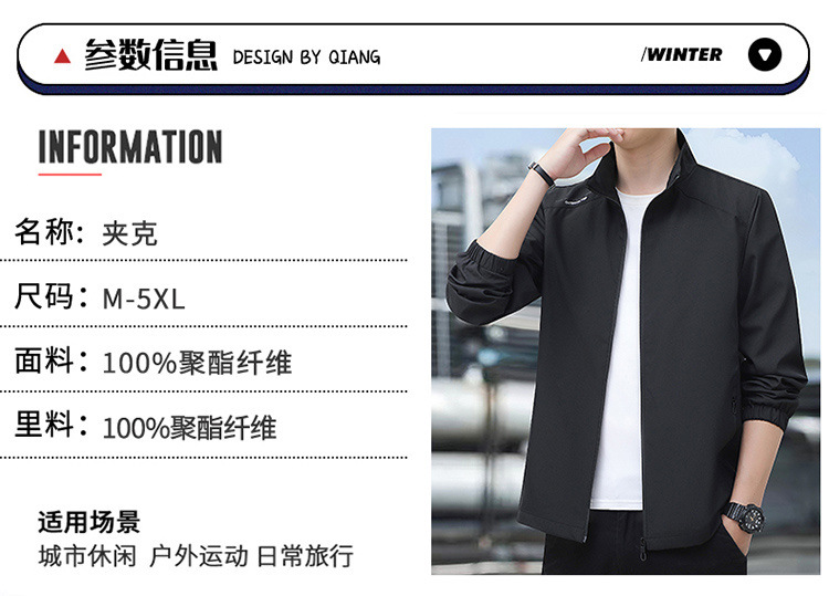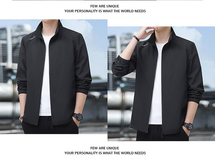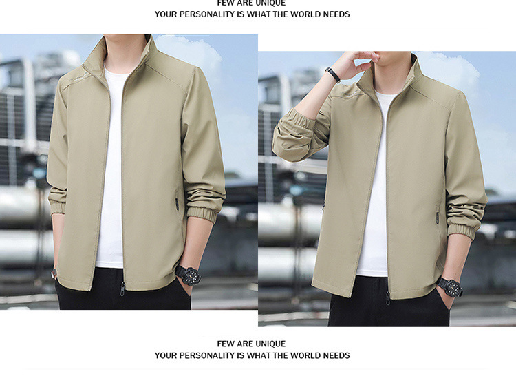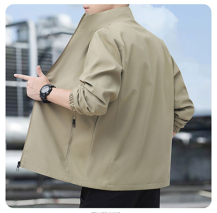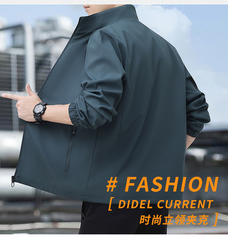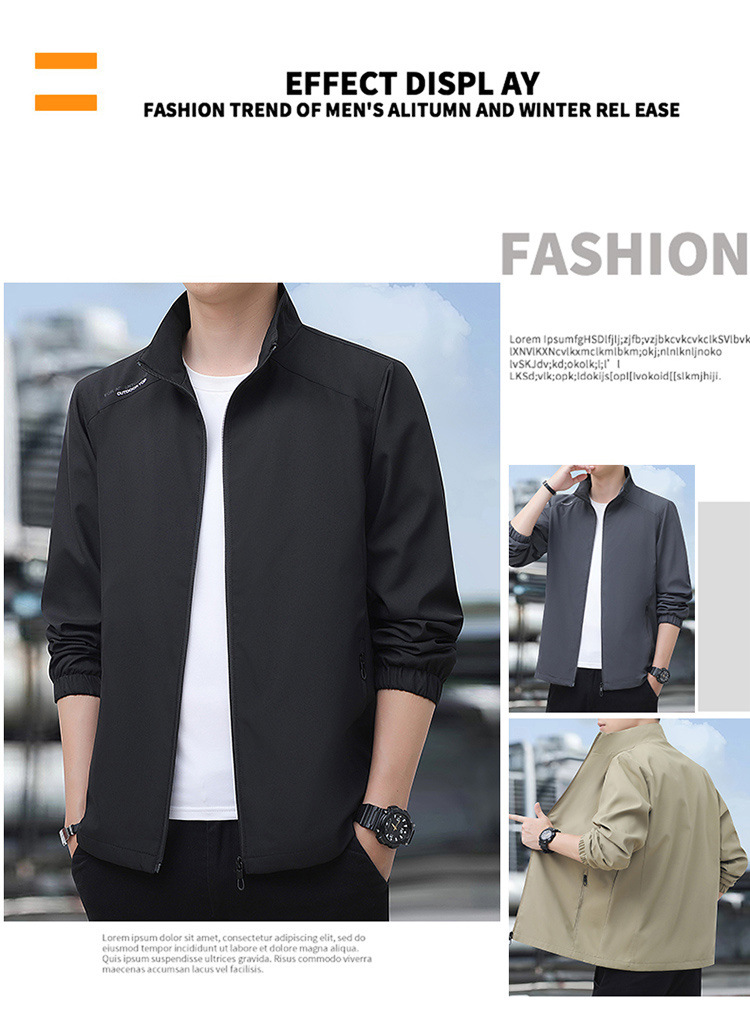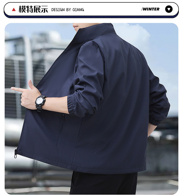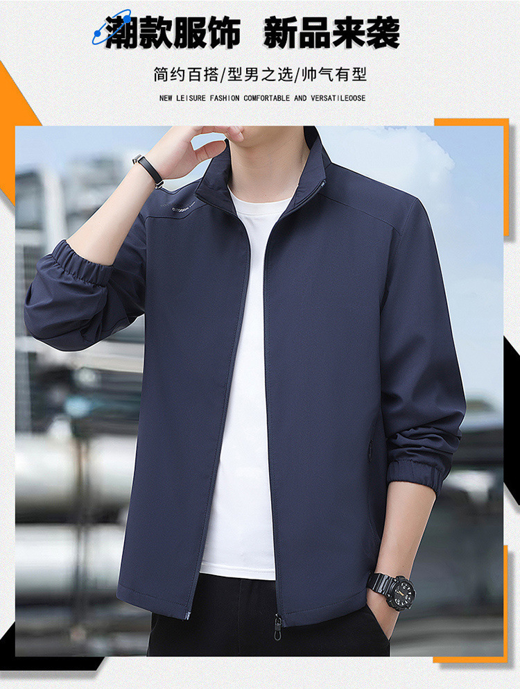2024高品质夹克秋季新款中年男士百搭休闲纯色立领爸爸装外套上衣