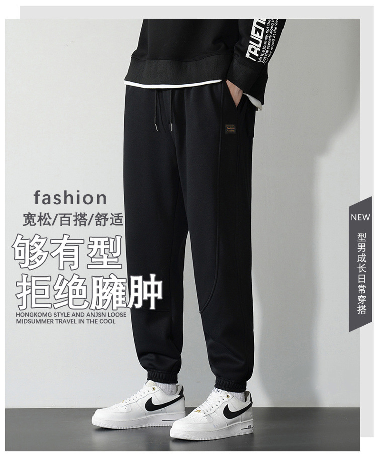 纯棉灰色卫裤男士春秋季新款学生潮流运动裤束脚裤子宽
