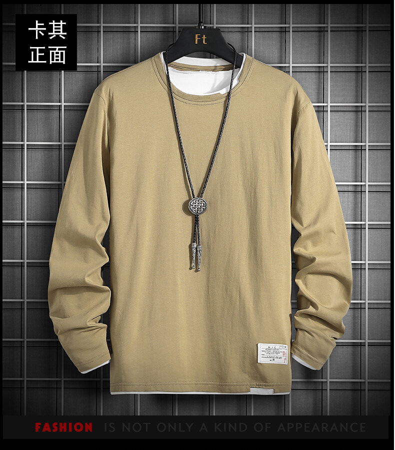 爆款卫衣男纯棉春秋季新款假两件长袖t恤衫韩版时尚打底上衣批发