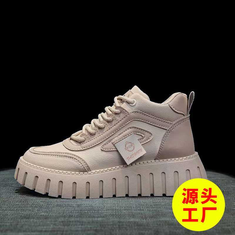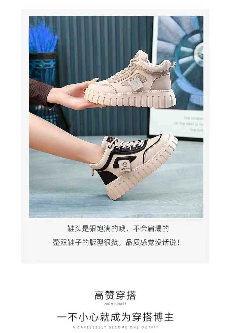 高帮女鞋2024新款厚底增高板鞋休闲运动拼色系板鞋女单棉同款批发