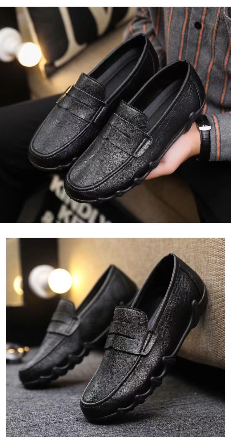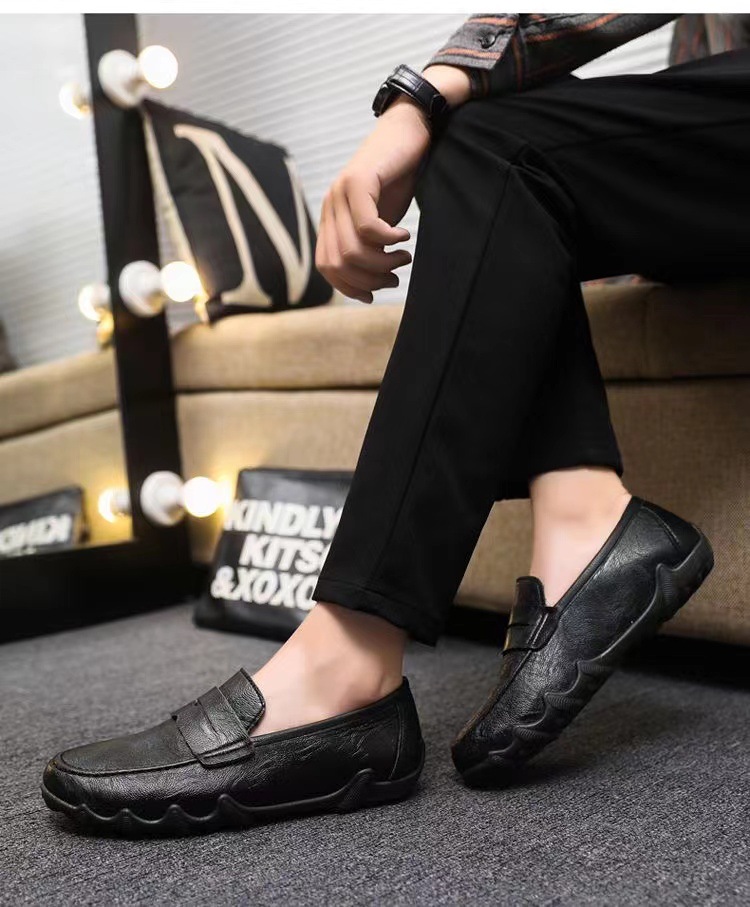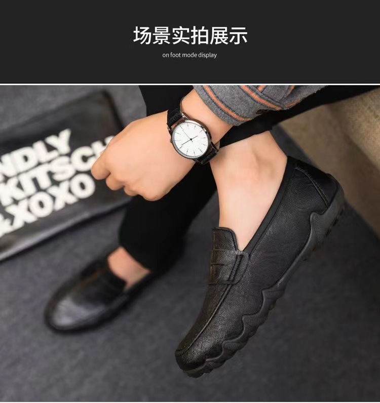 2024秋季新款时尚男鞋豆豆鞋皮面潮流软底一脚蹬懒人男鞋