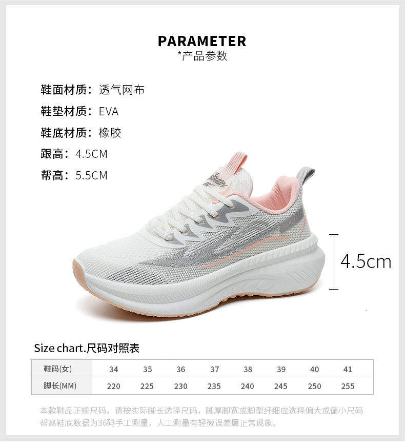 时尚轻便软底运动鞋女2024夏季新款轻便军训运动鞋女飞织透气女鞋
