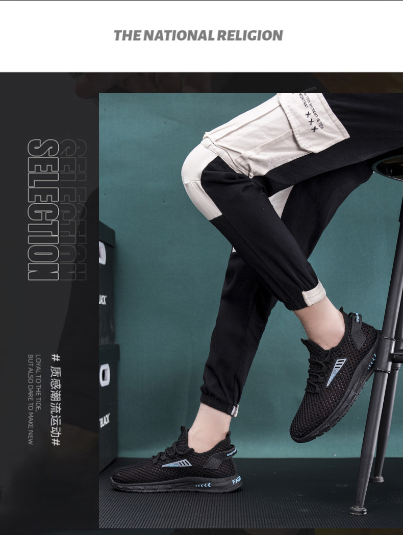 运动鞋春夏男厚底百搭老爹鞋拼色潮流低帮网面透气舒适系带休闲鞋