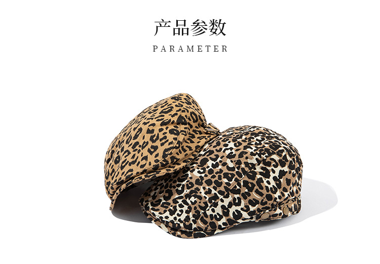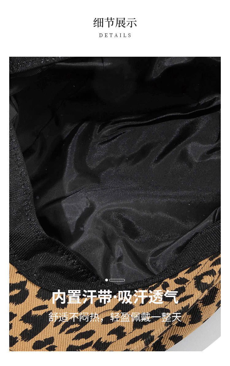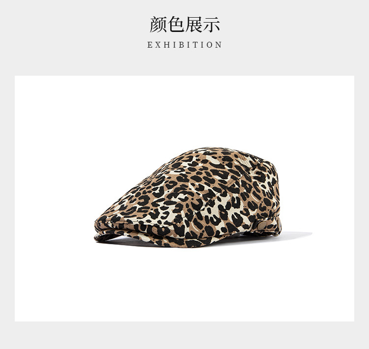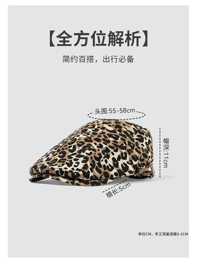 ins辣妹设计师款豹纹前进帽亚比潮搭小众复古贝雷帽女时尚报童帽