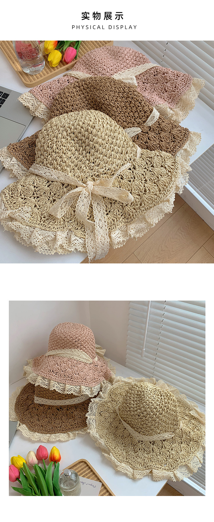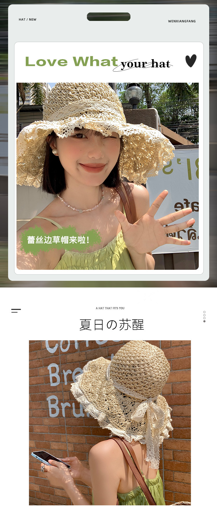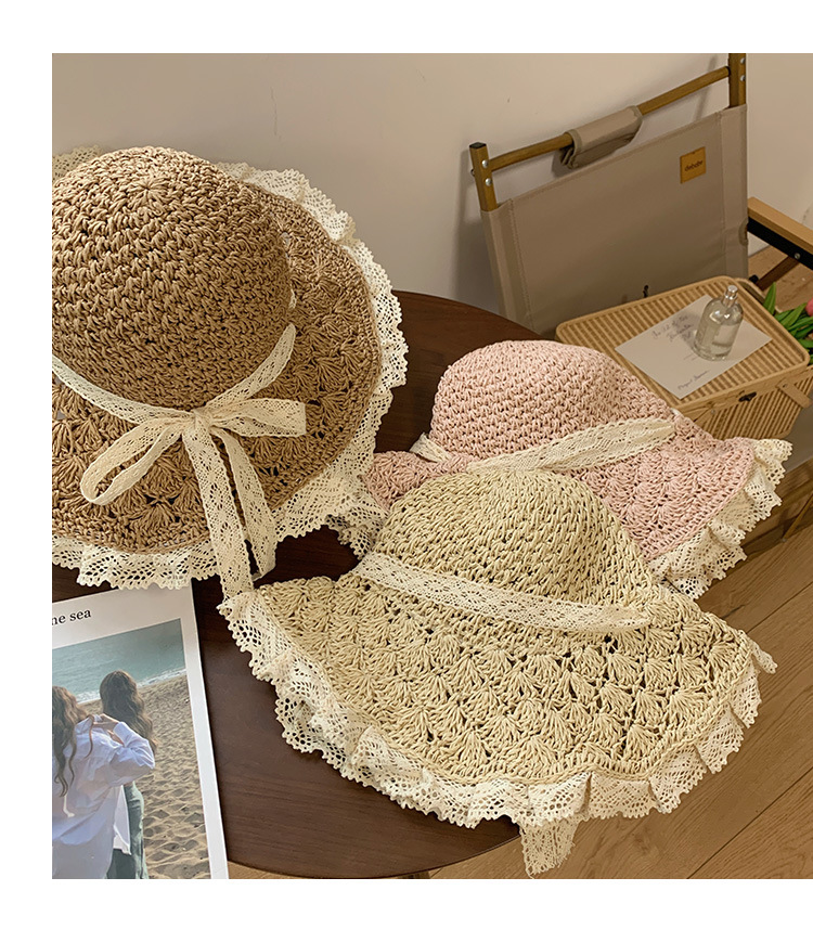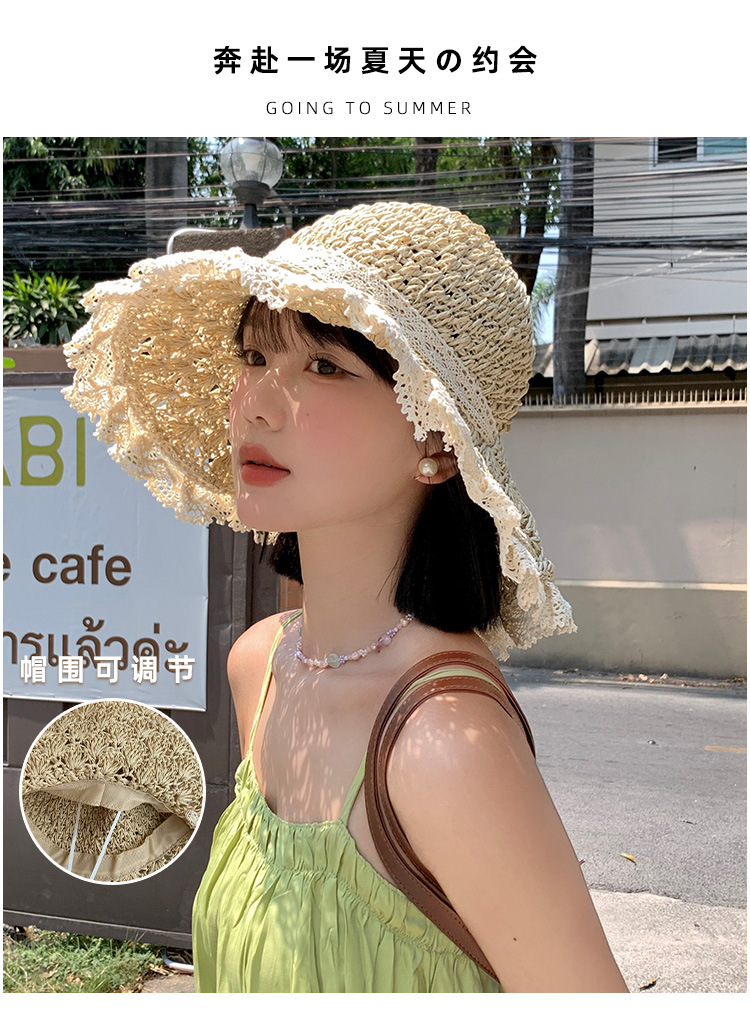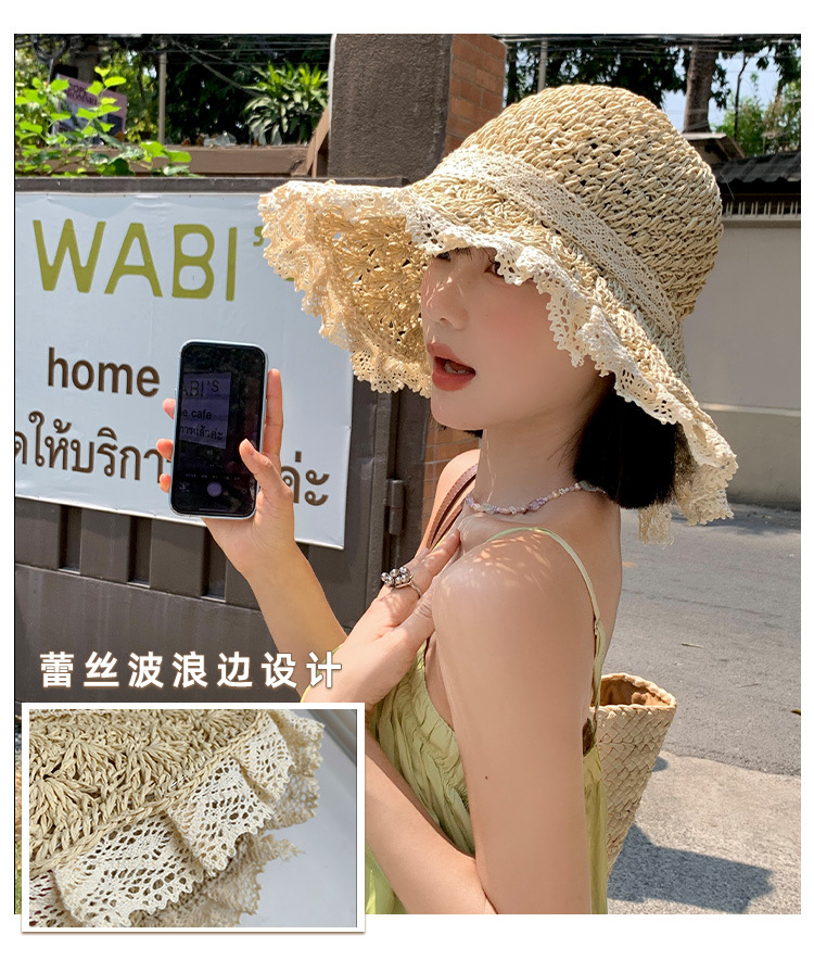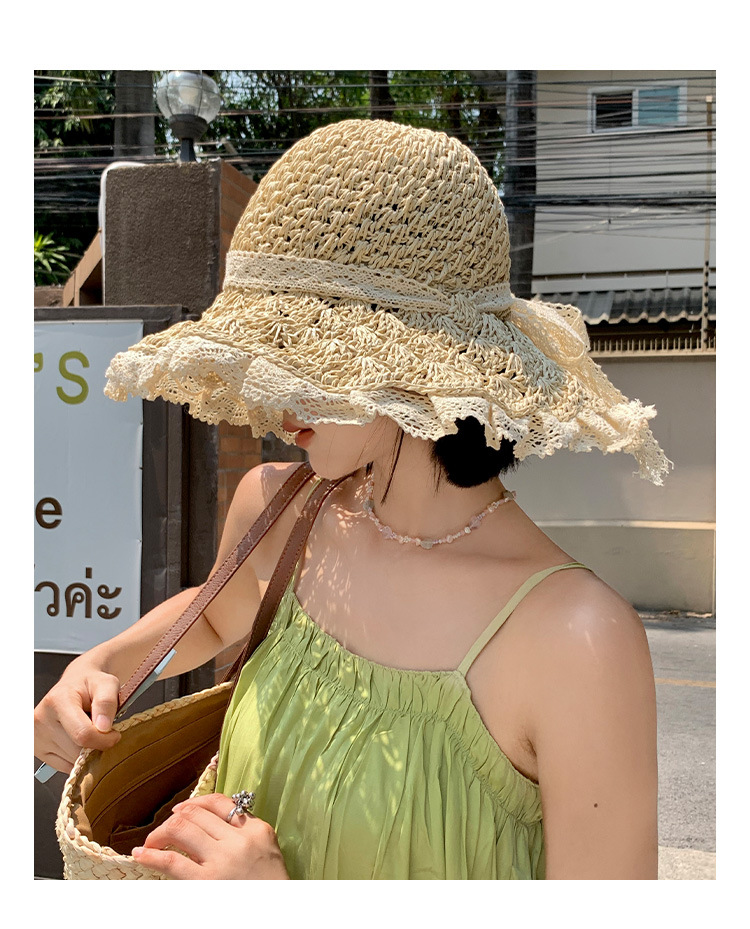 镂空飘带草帽女夏季海边度假草编遮阳防晒帽日系沙滩甜美
