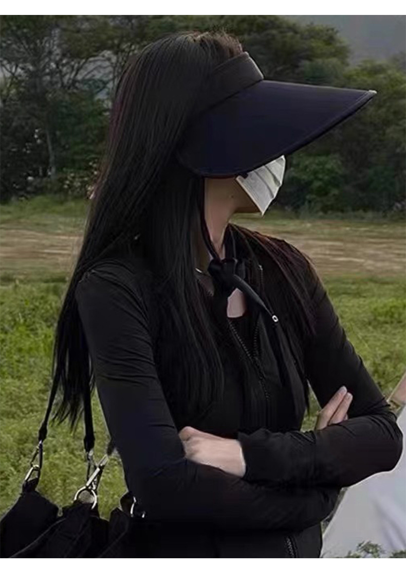 升级版晚晚同款发箍式空顶帽女夏季防紫外线黑色遮阳防晒帽骑车潮