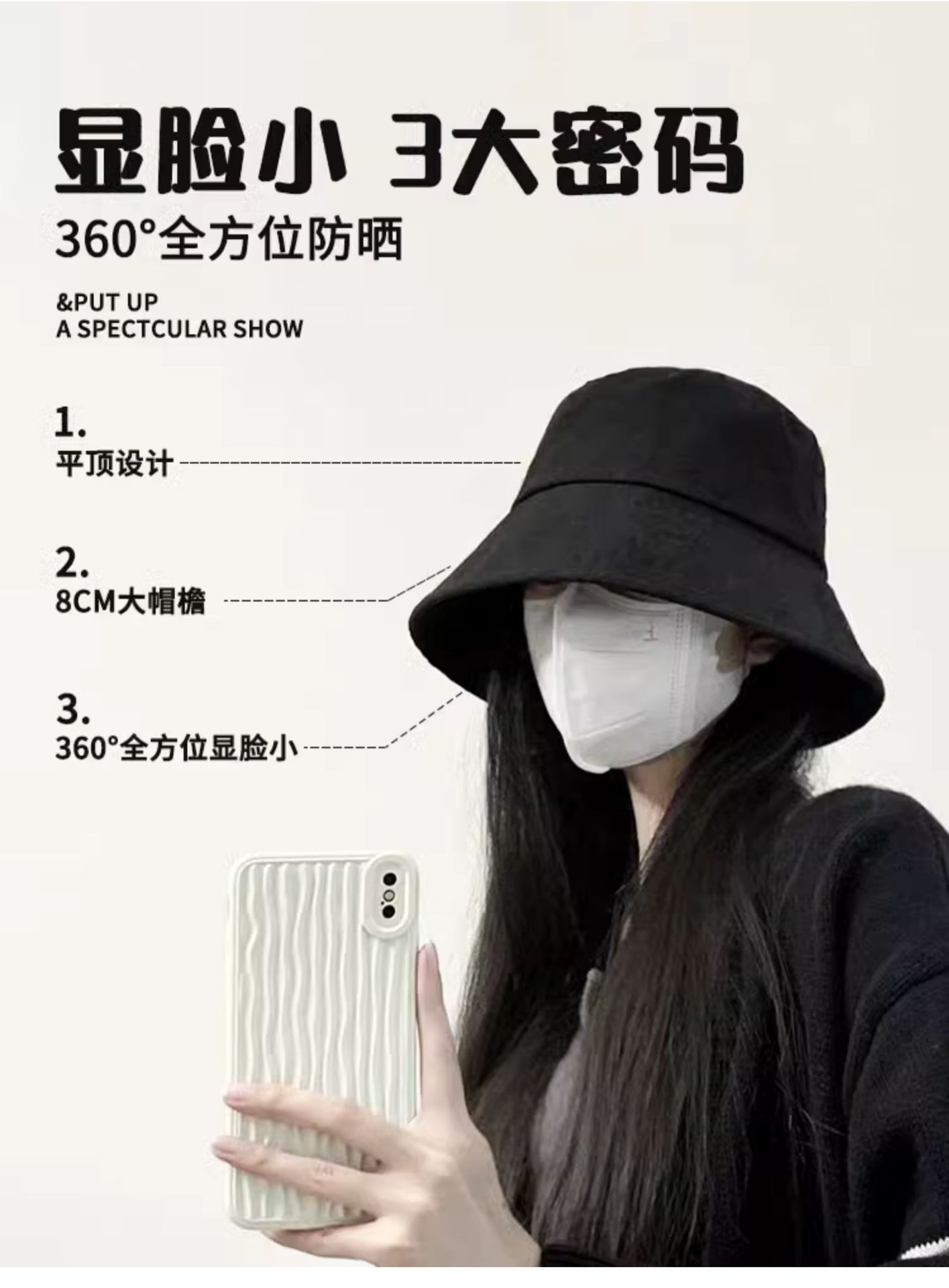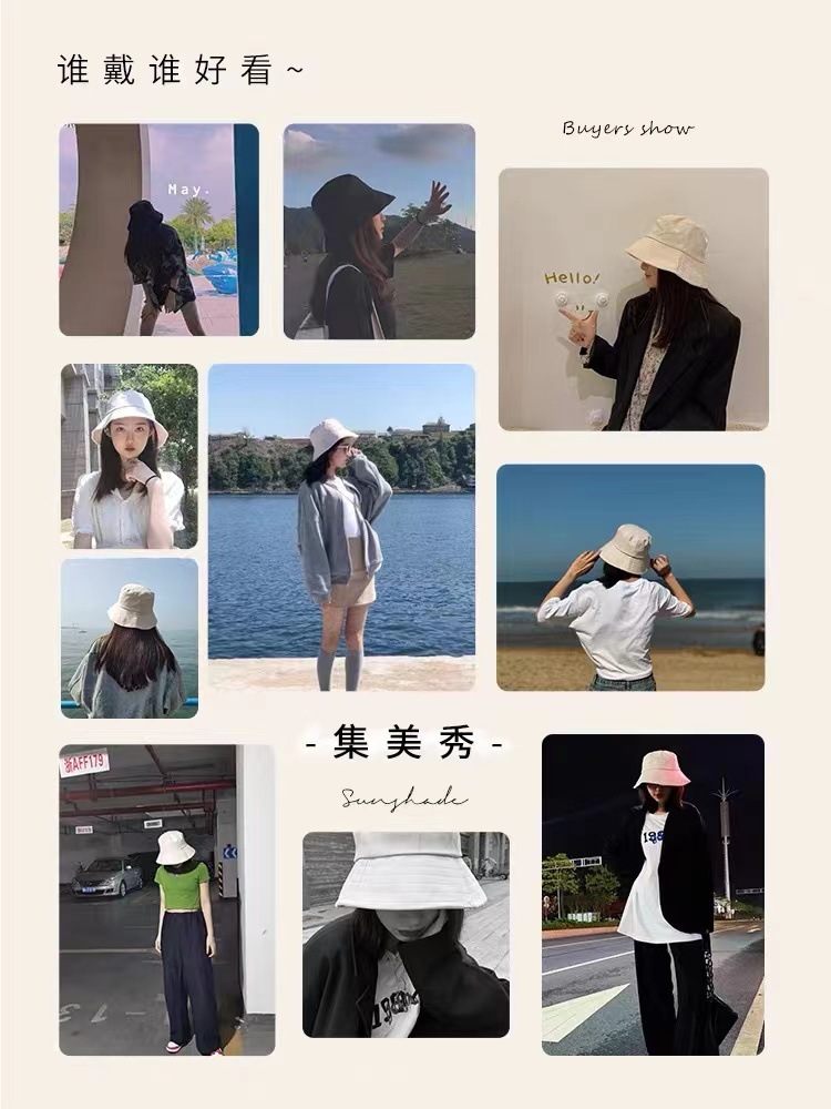 纯色大头围渔夫帽女春夏防紫外线气质显脸小太阳帽盆帽女户外防晒