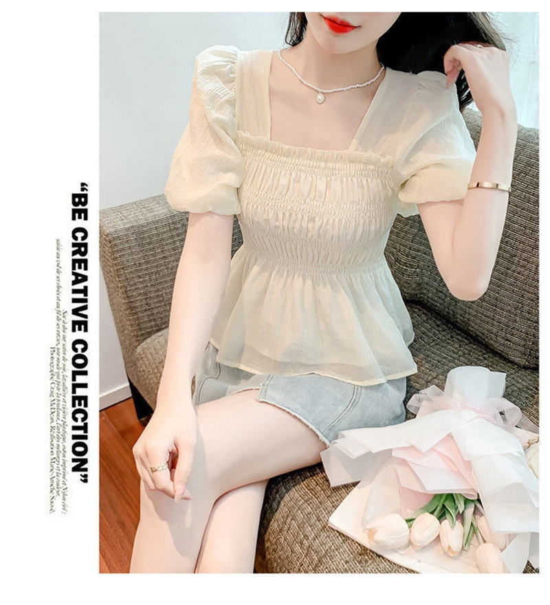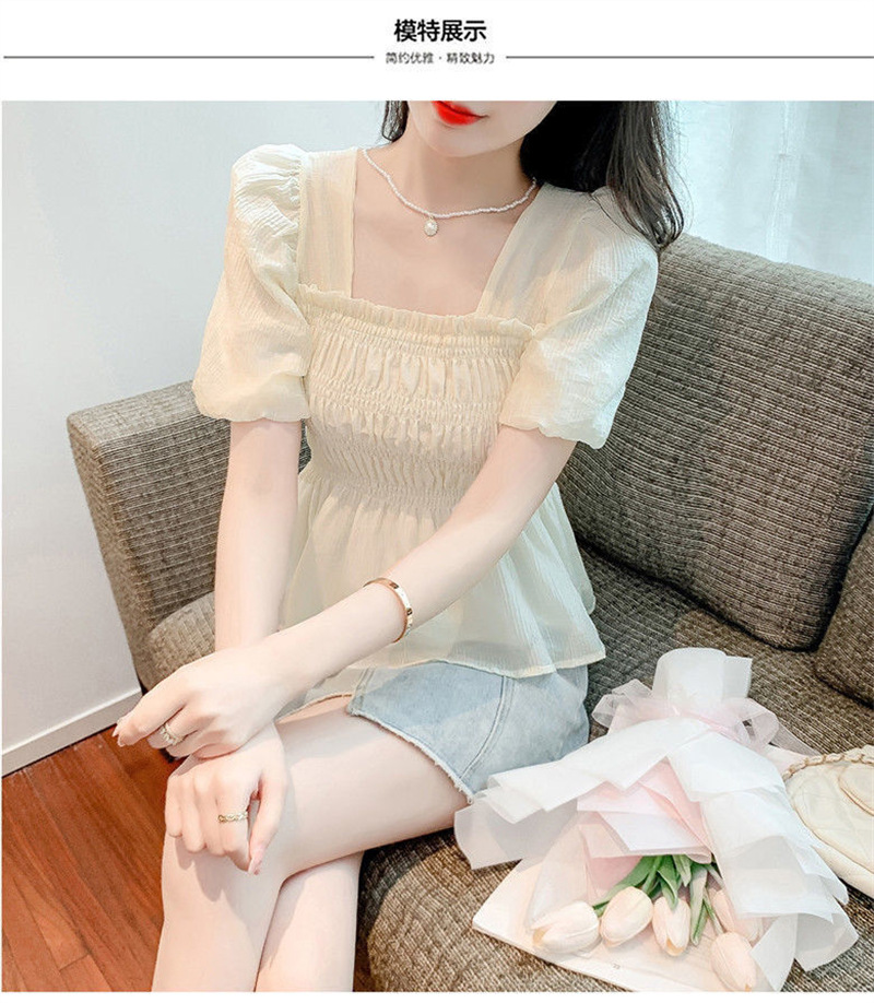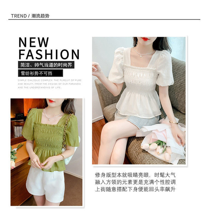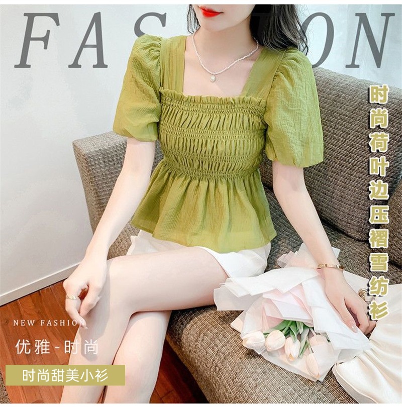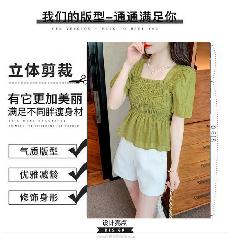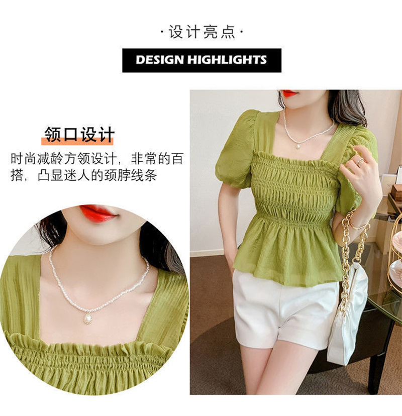 法式方领短袖雪纺衬衫女装夏装新款设计感小众短款上衣遮肚子小衫
