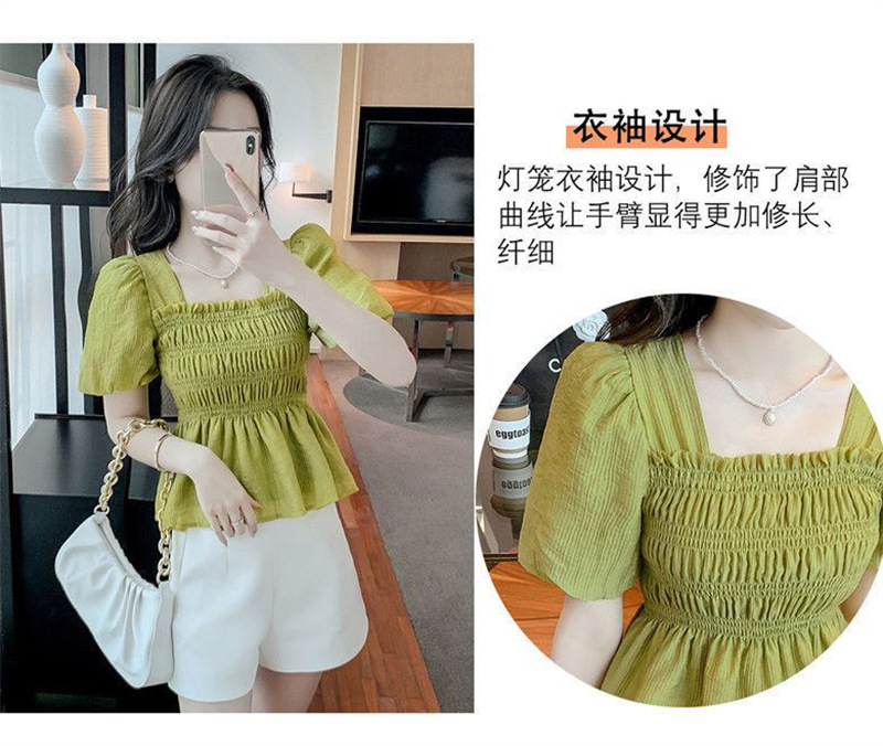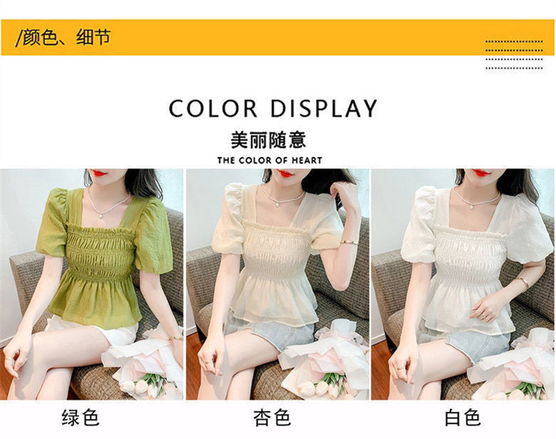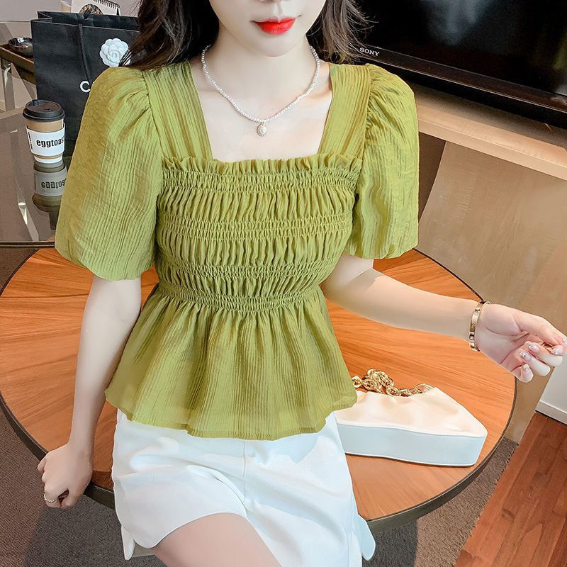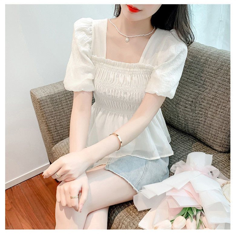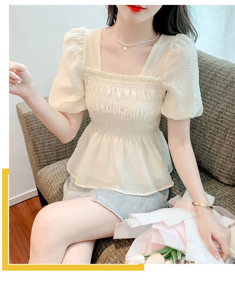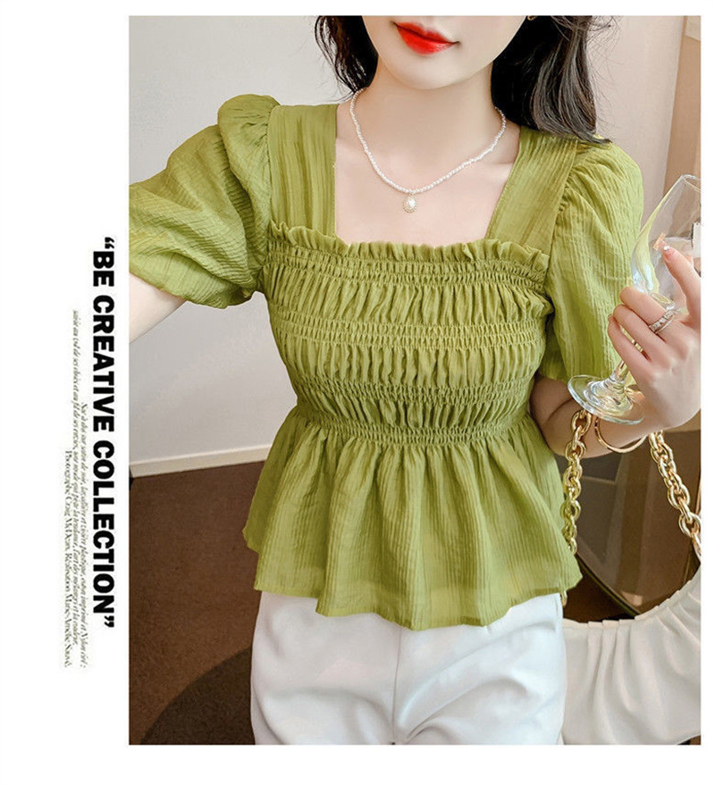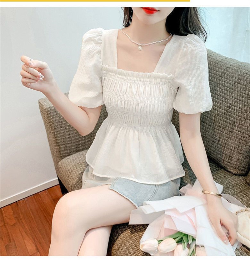 法式方领短袖雪纺衬衫女装夏装新款设计感小众短款上衣遮肚子小衫