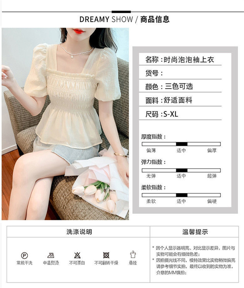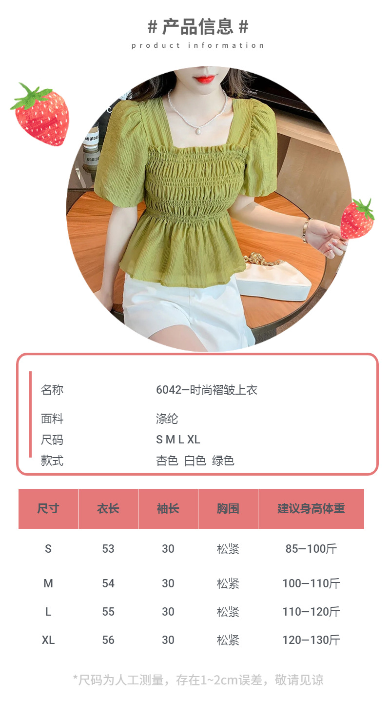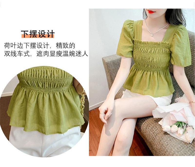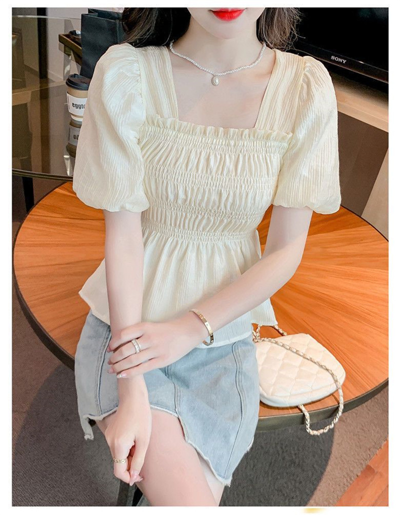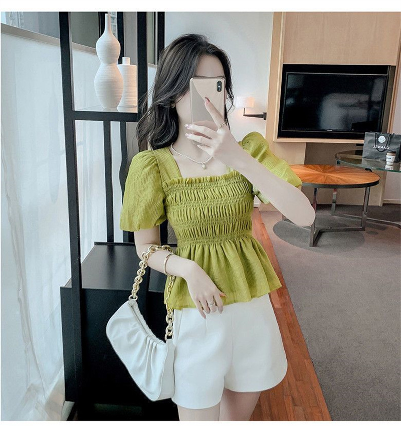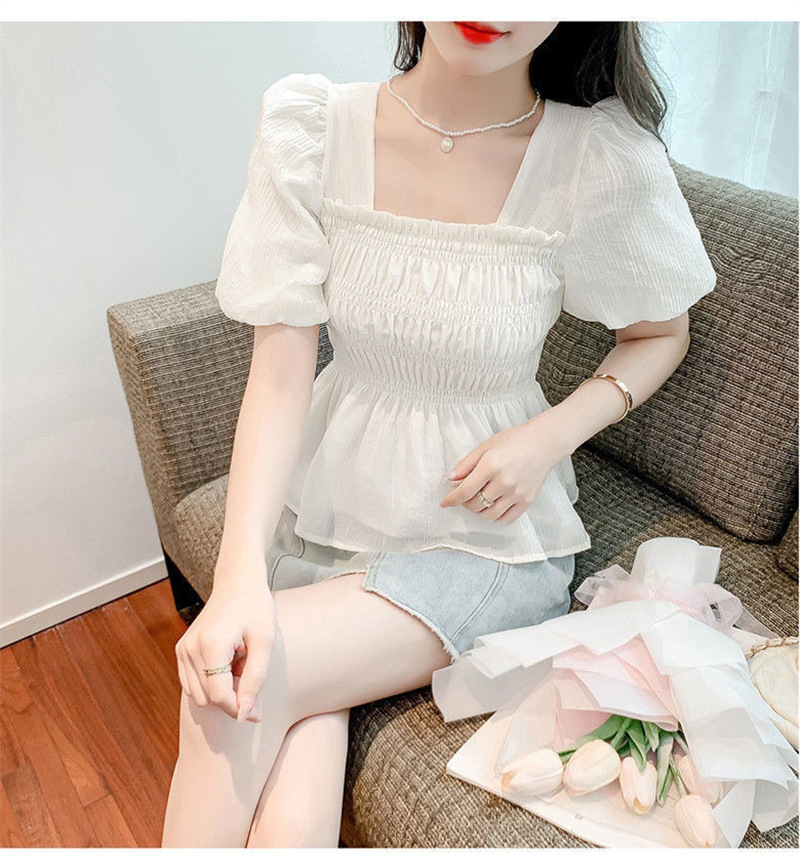 法式方领短袖雪纺衬衫女装夏装新款设计感小众短款上衣遮肚子小衫