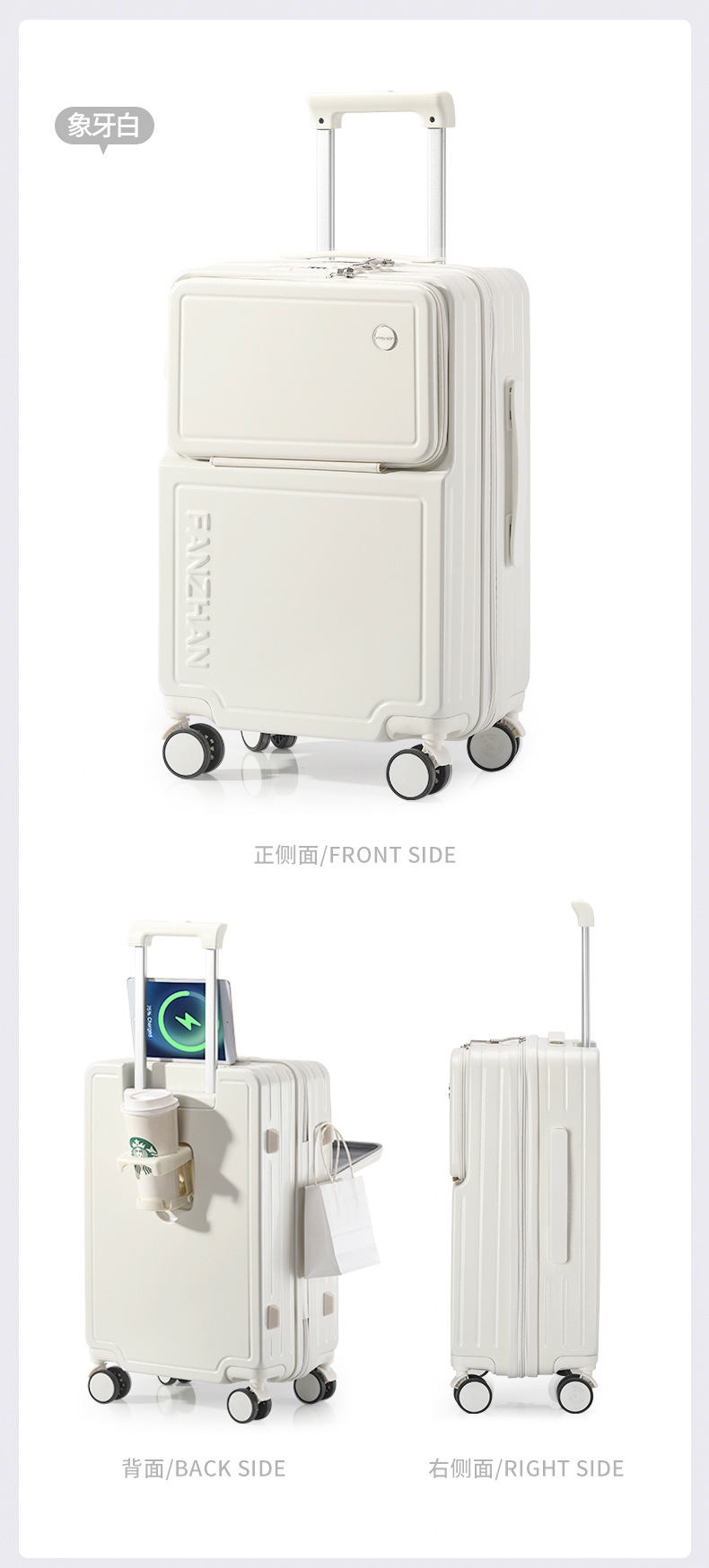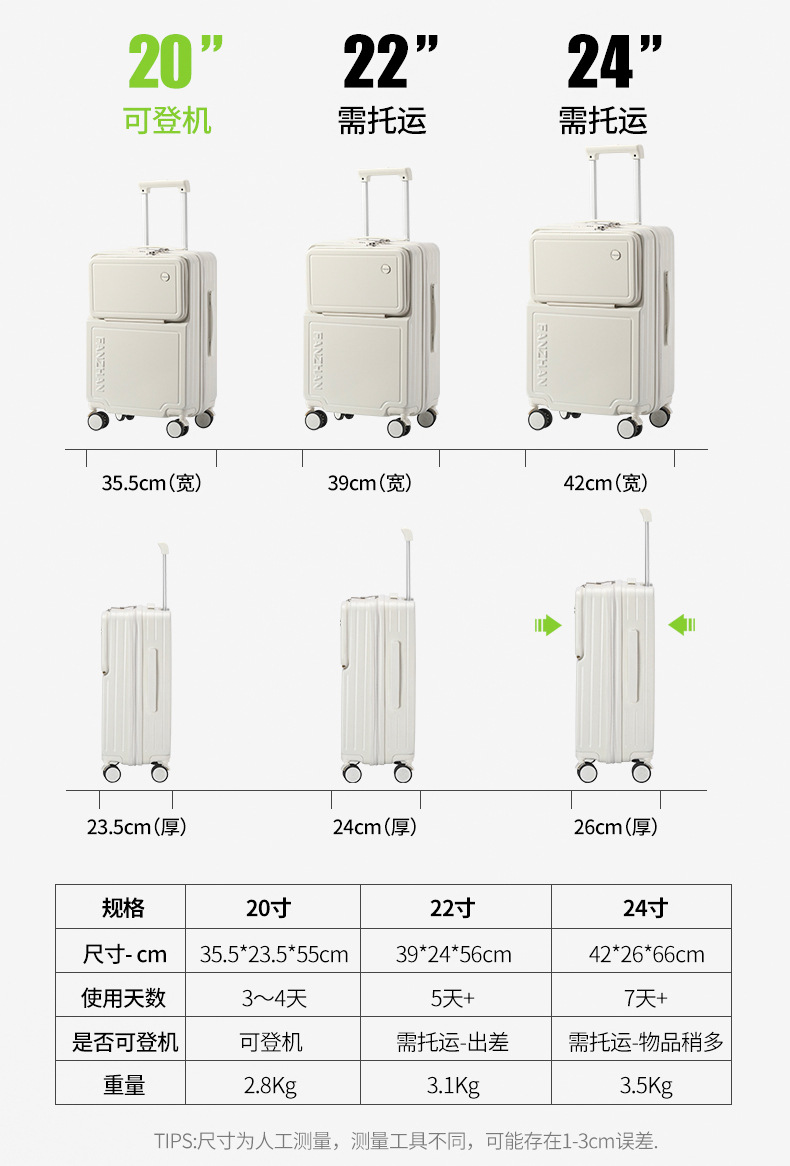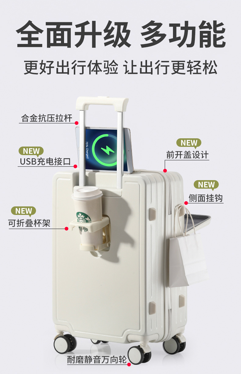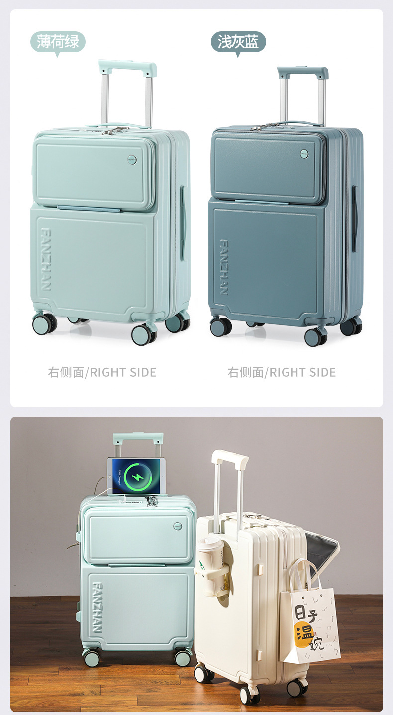前置开口行李箱女学生小便携拉杆箱密码箱男20寸登机箱静音万向轮