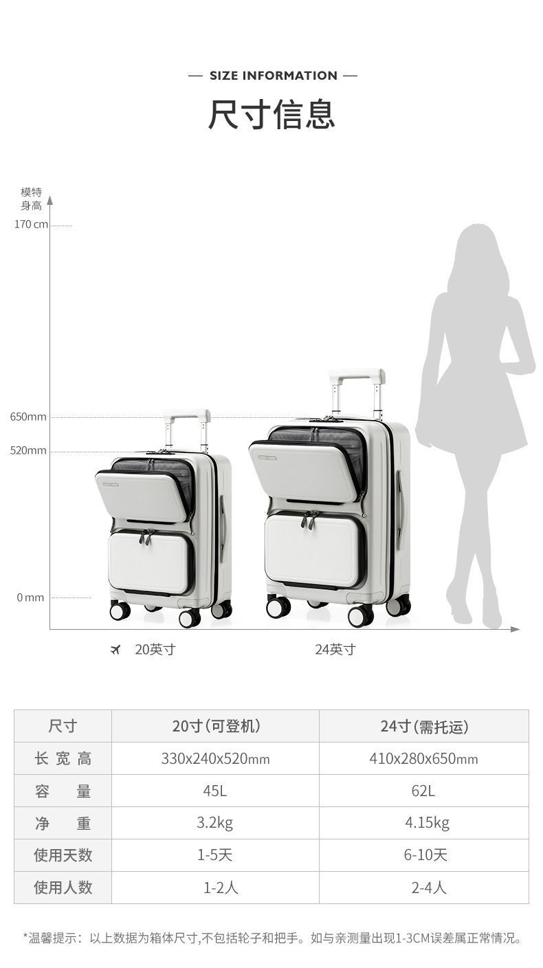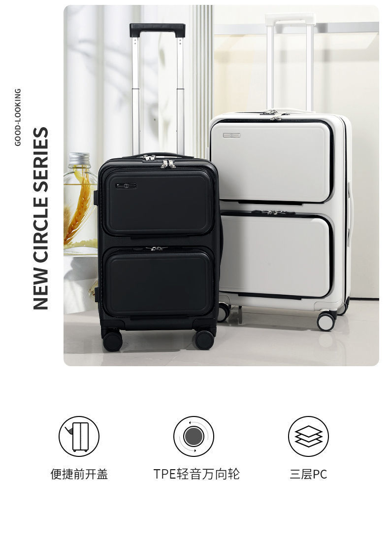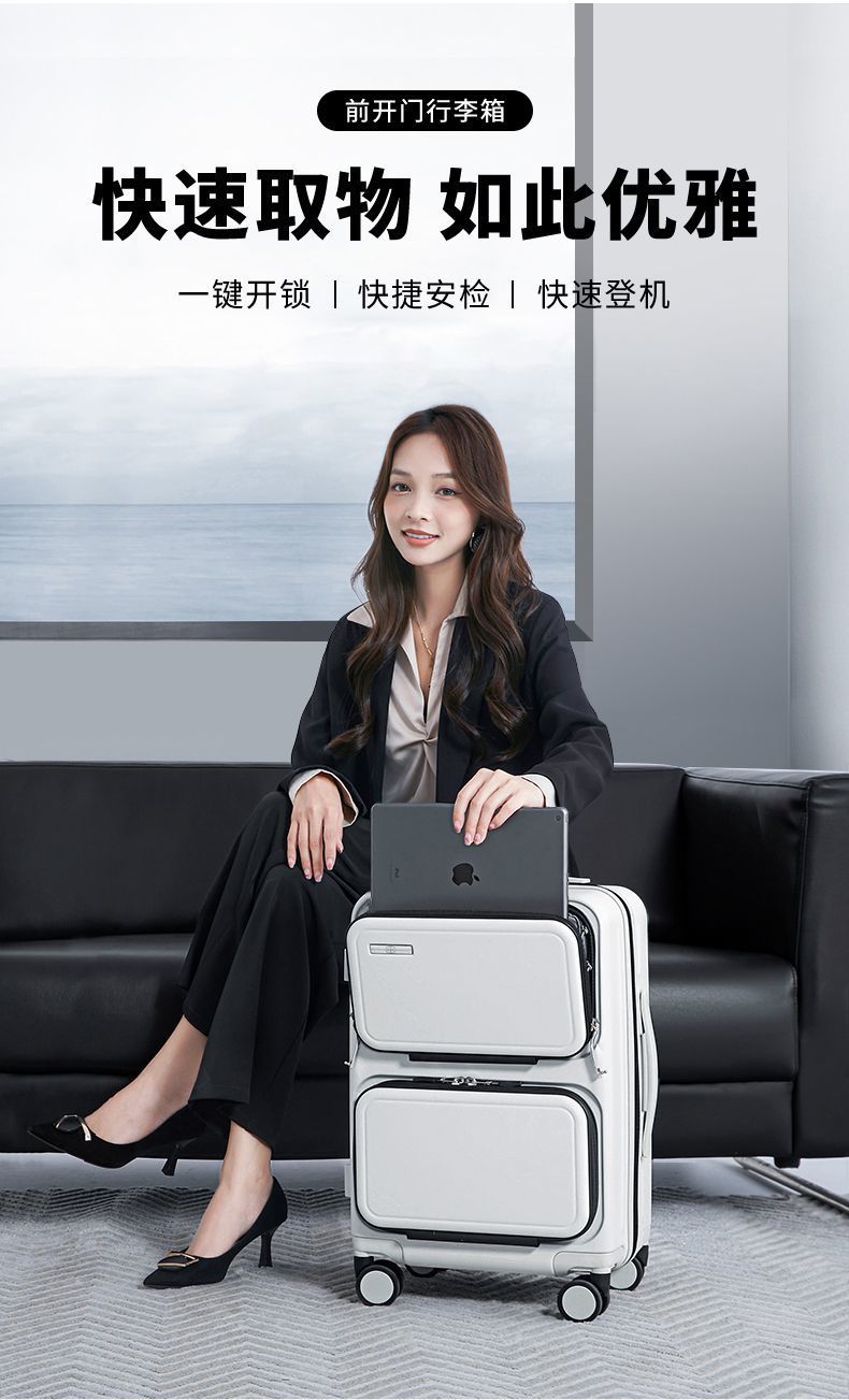jqn瑞士军刀多功能拉杆箱男前置开口行李箱拉链款旅行箱20寸登机