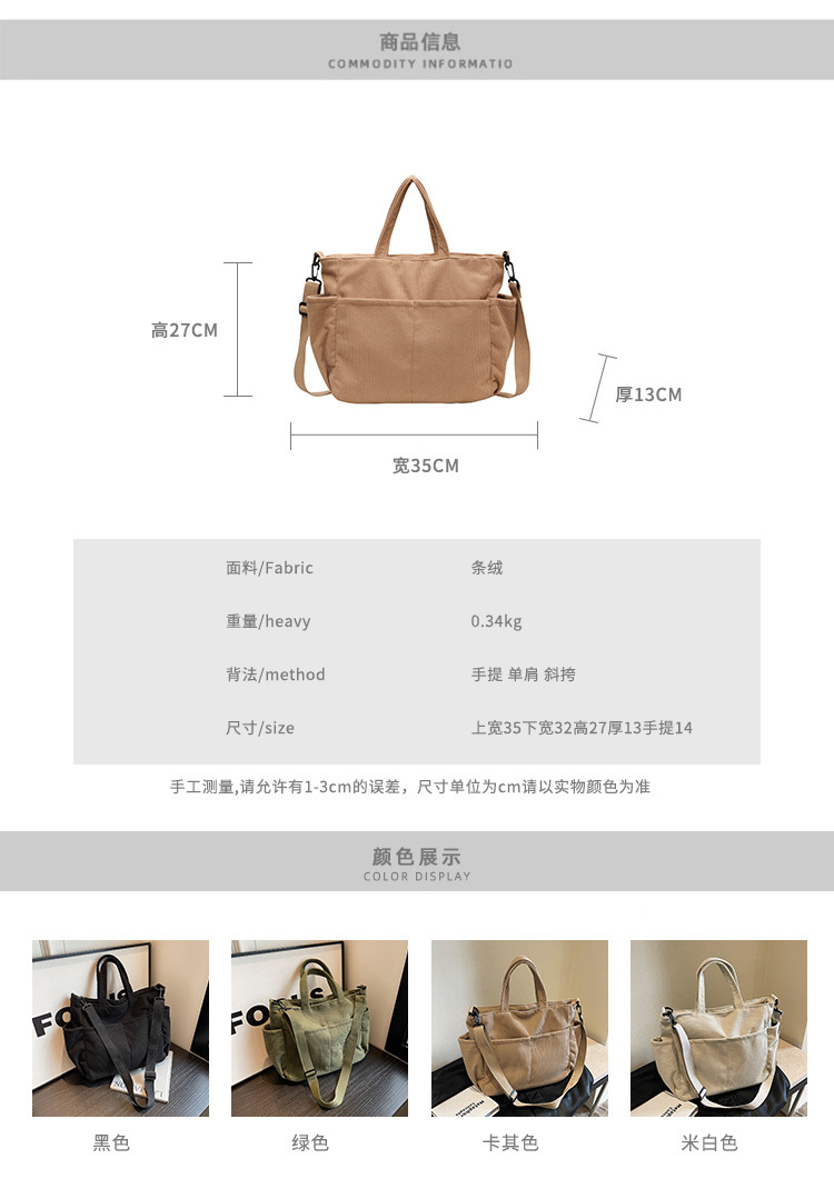 包包女秋冬新款大容量通勤托特包学生上课单肩斜挎包小众百搭布包