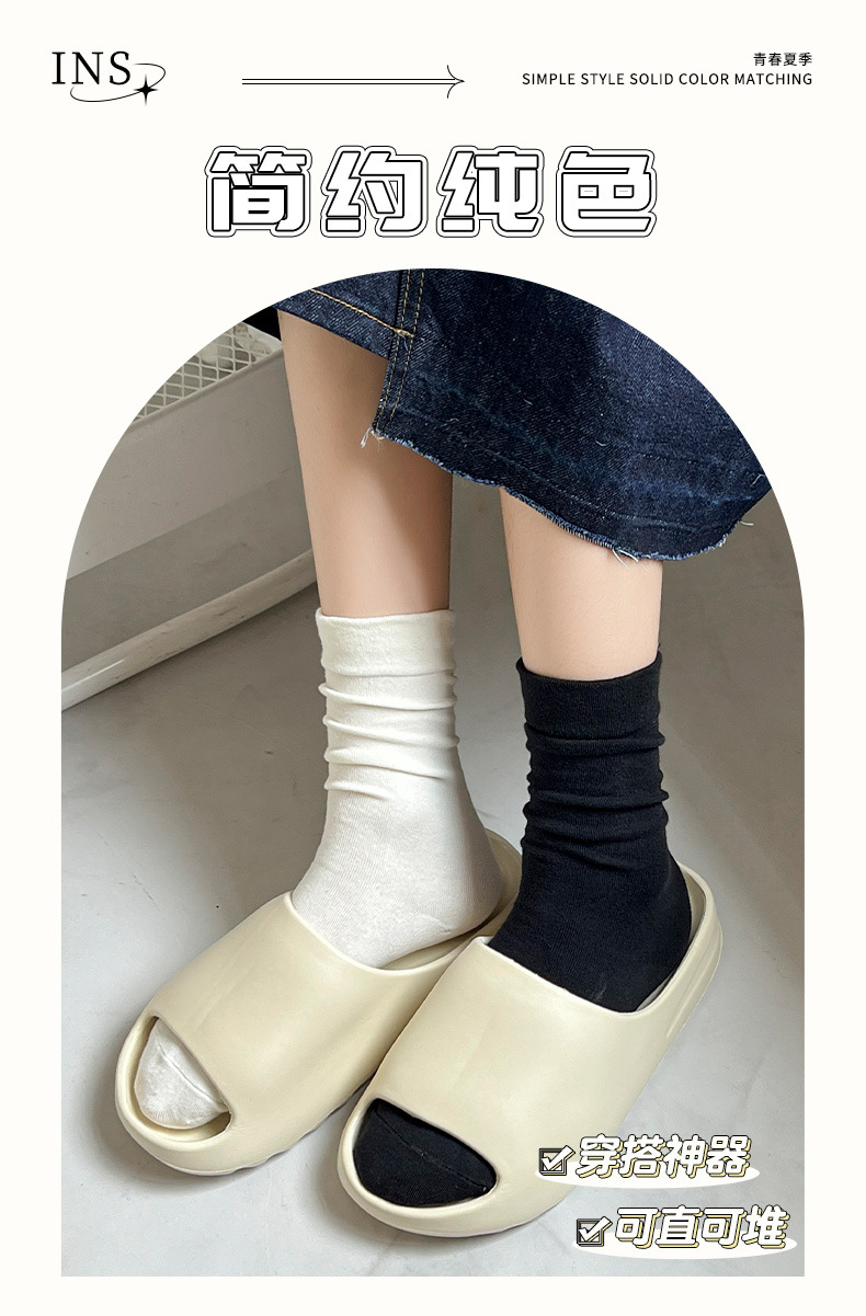 诸暨袜子月子袜白色堆堆袜日系韩版ins潮纯棉春夏无骨袜女士中筒