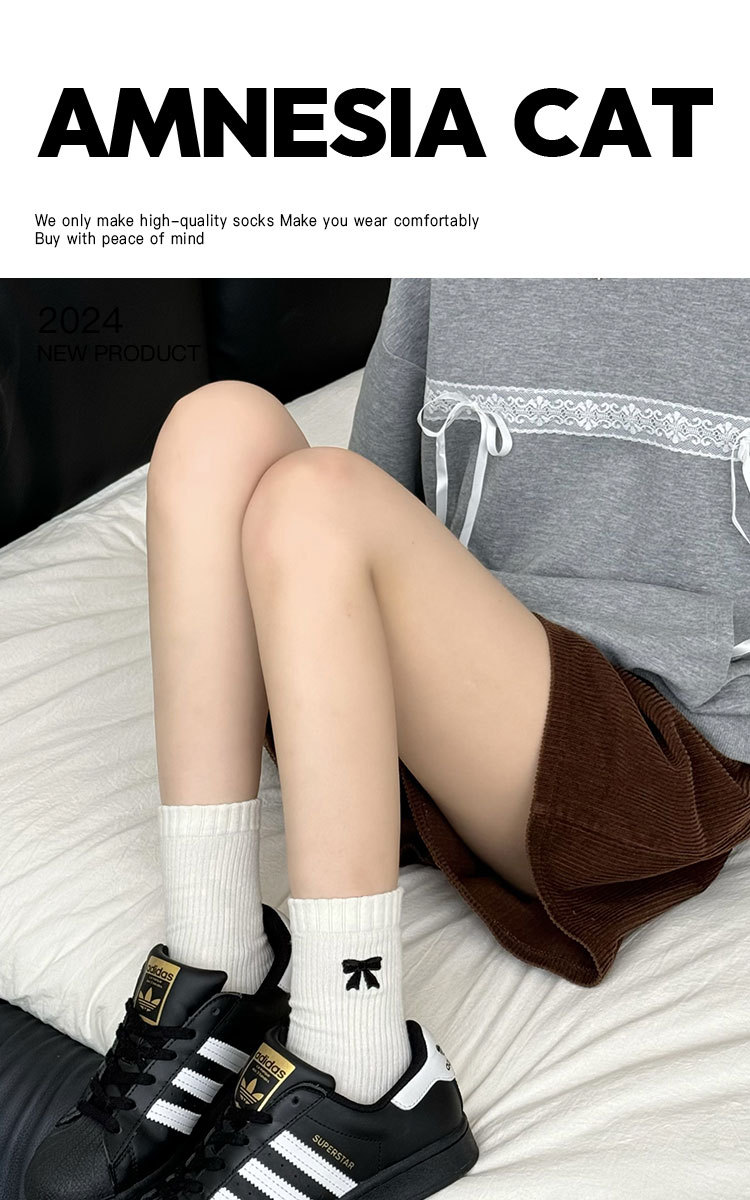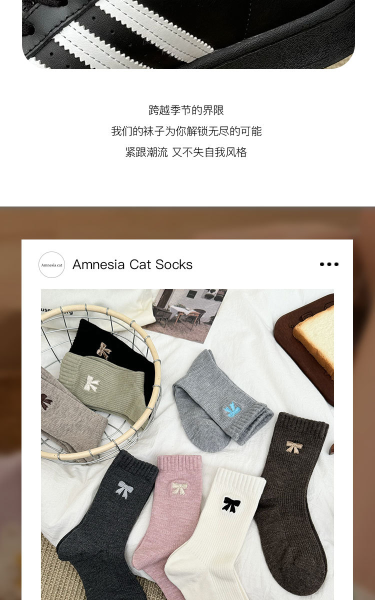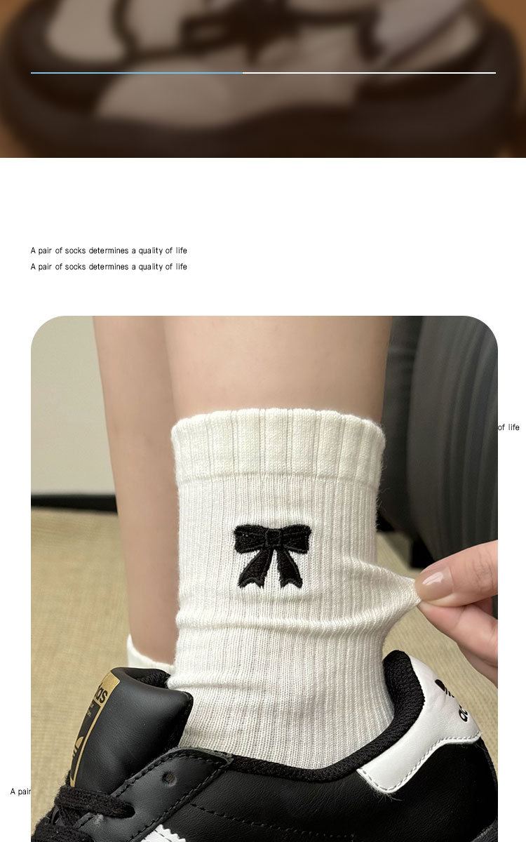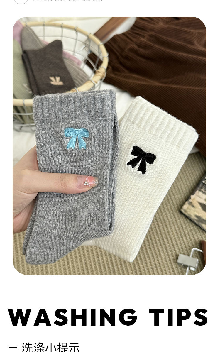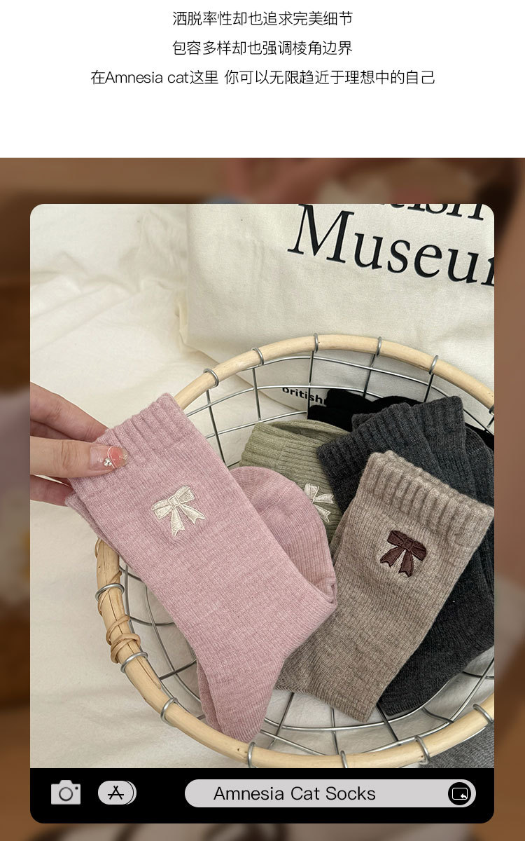美拉德袜子女春秋ins潮纯棉中筒袜蝴蝶结长筒袜羊毛袜女秋冬棉袜