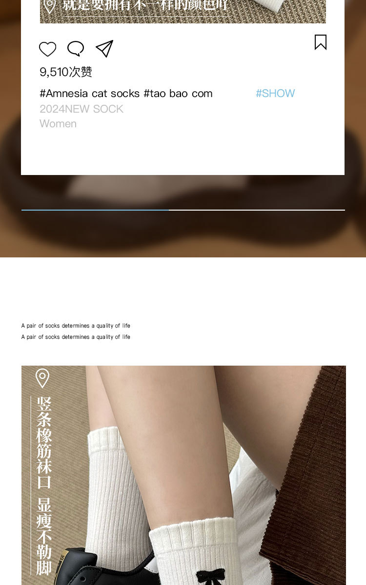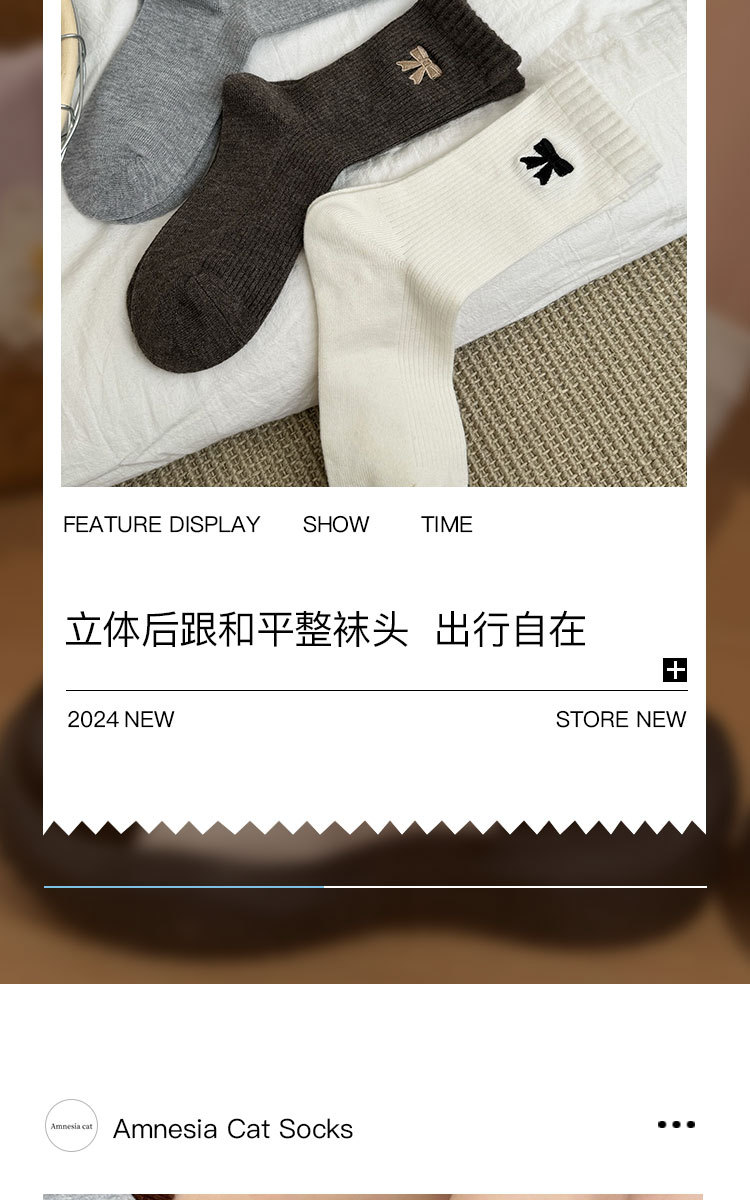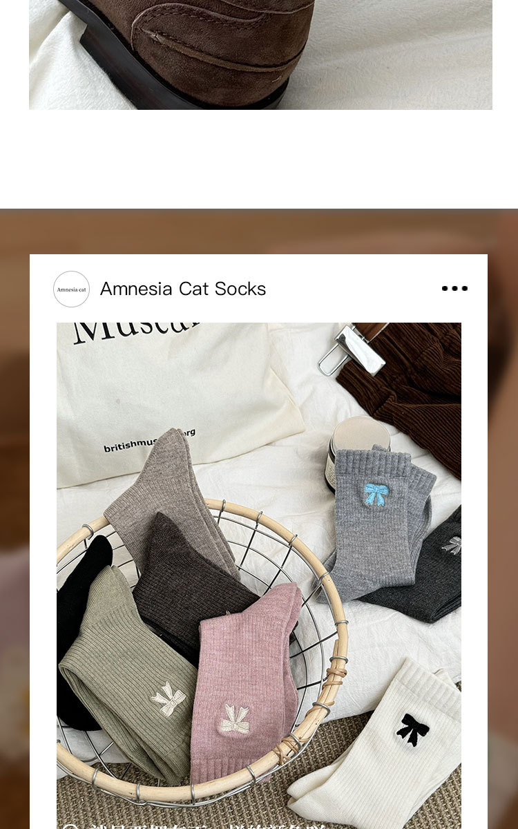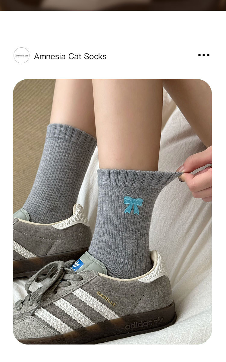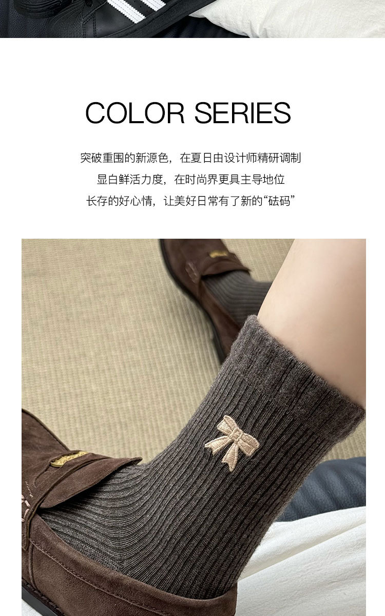 美拉德袜子女春秋ins潮纯棉中筒袜蝴蝶结长筒袜羊毛袜女秋冬棉袜
