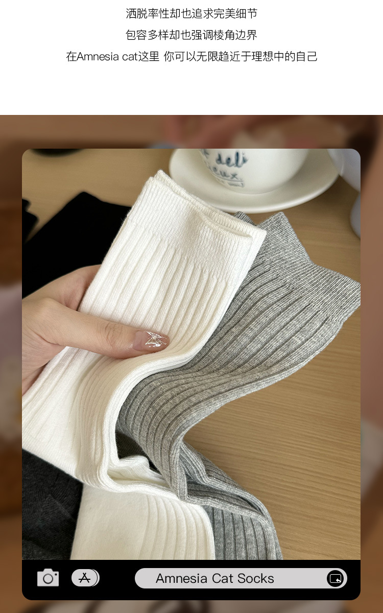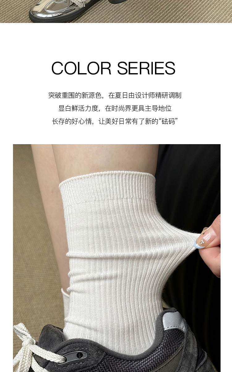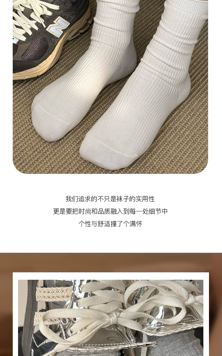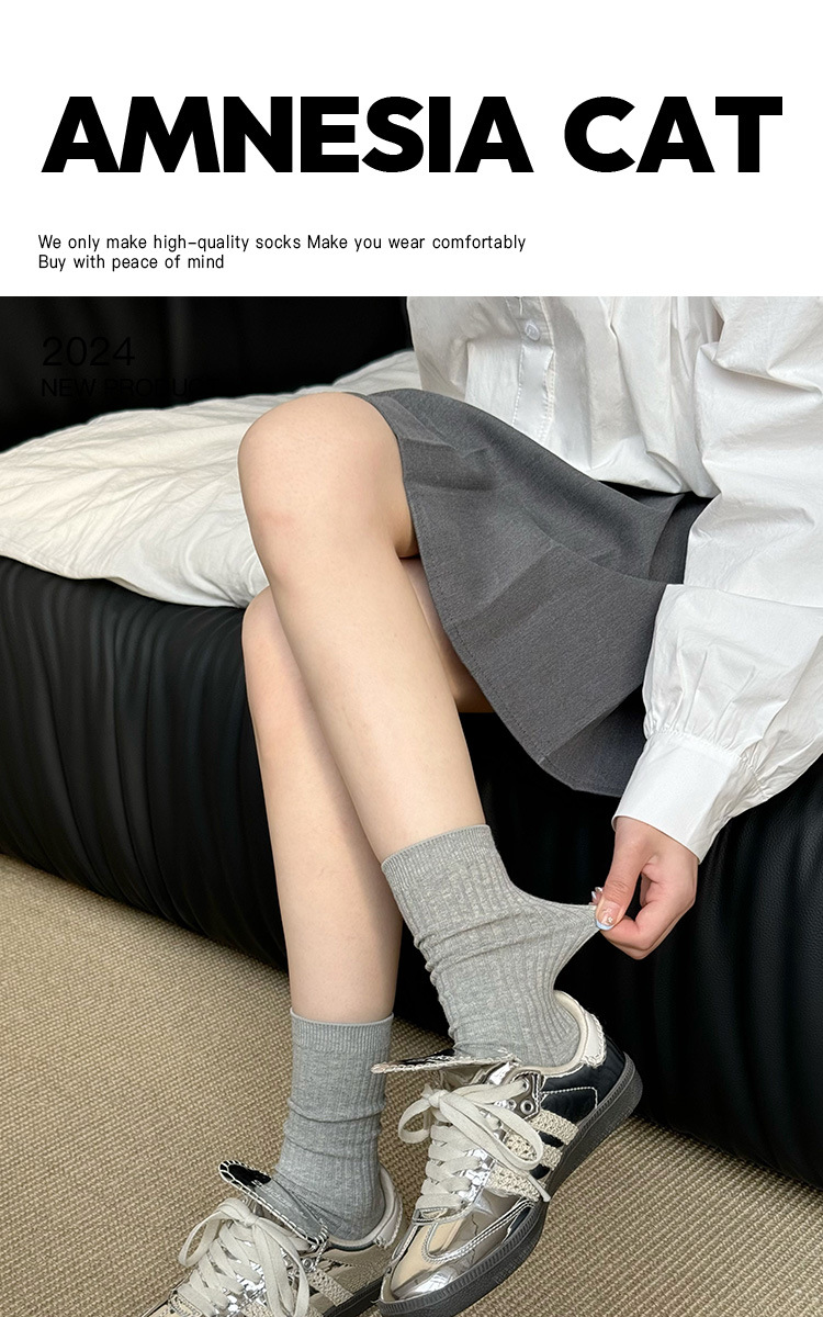 灰色袜子女中筒袜春秋纯棉德训鞋长袜白色夏季薄款堆堆袜配小皮鞋
