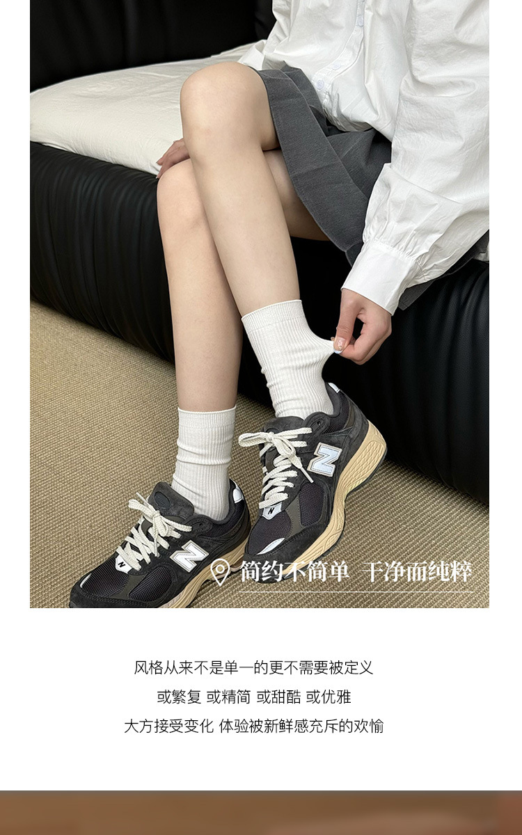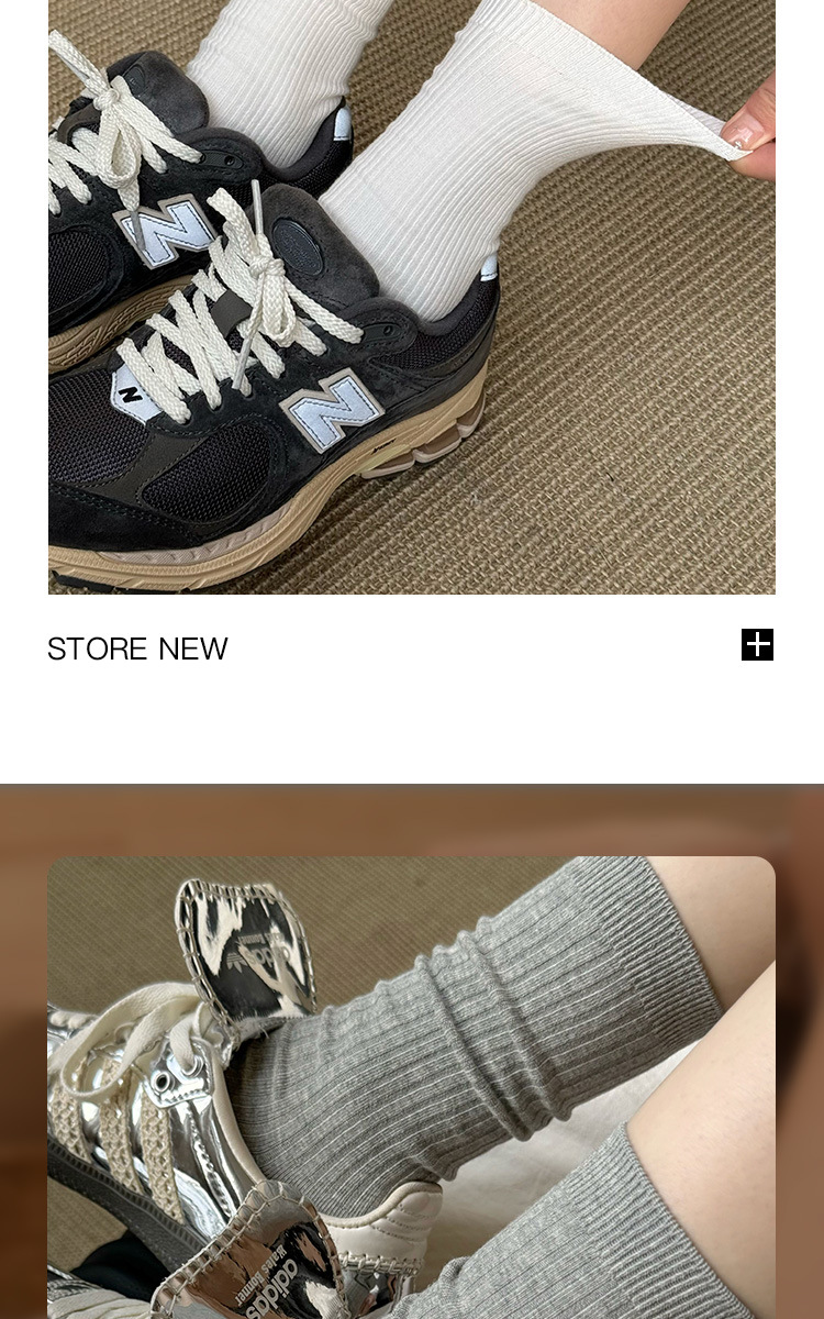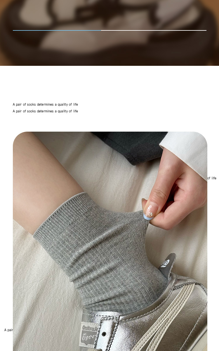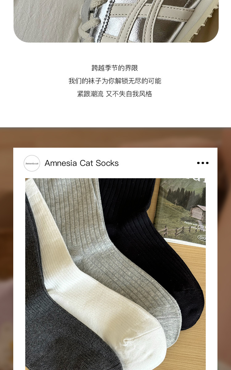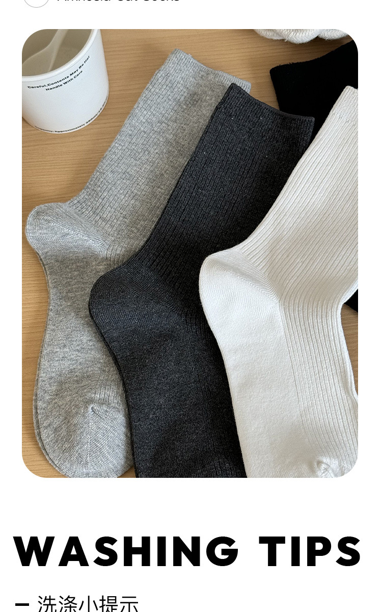灰色袜子女中筒袜春秋纯棉德训鞋长袜白色夏季薄款堆堆袜配小皮鞋
