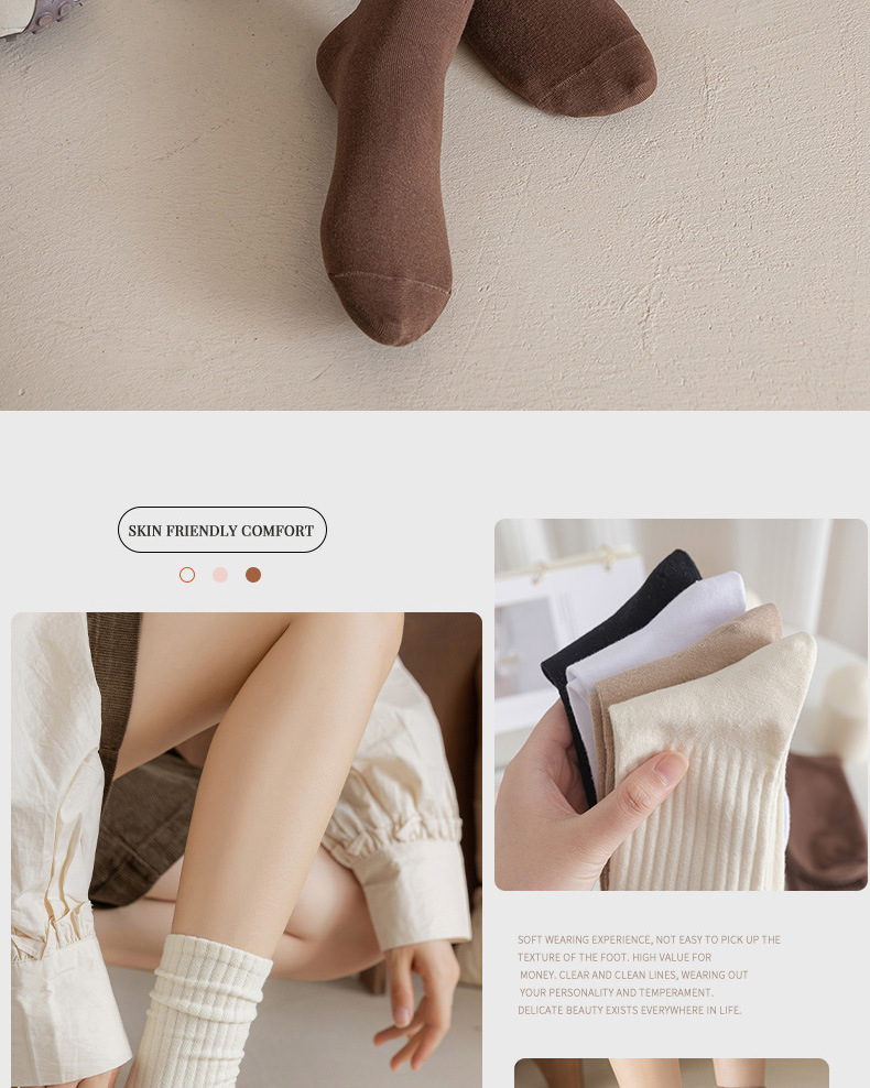 女款中筒无骨堆堆袜子 春秋冬季黑白月子长袜网红ins潮流棉袜批发