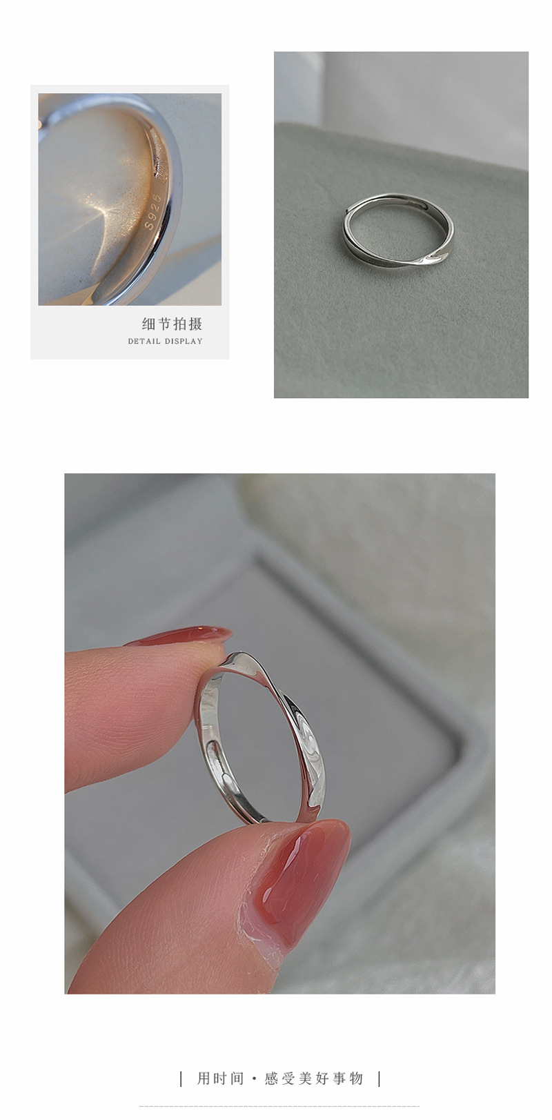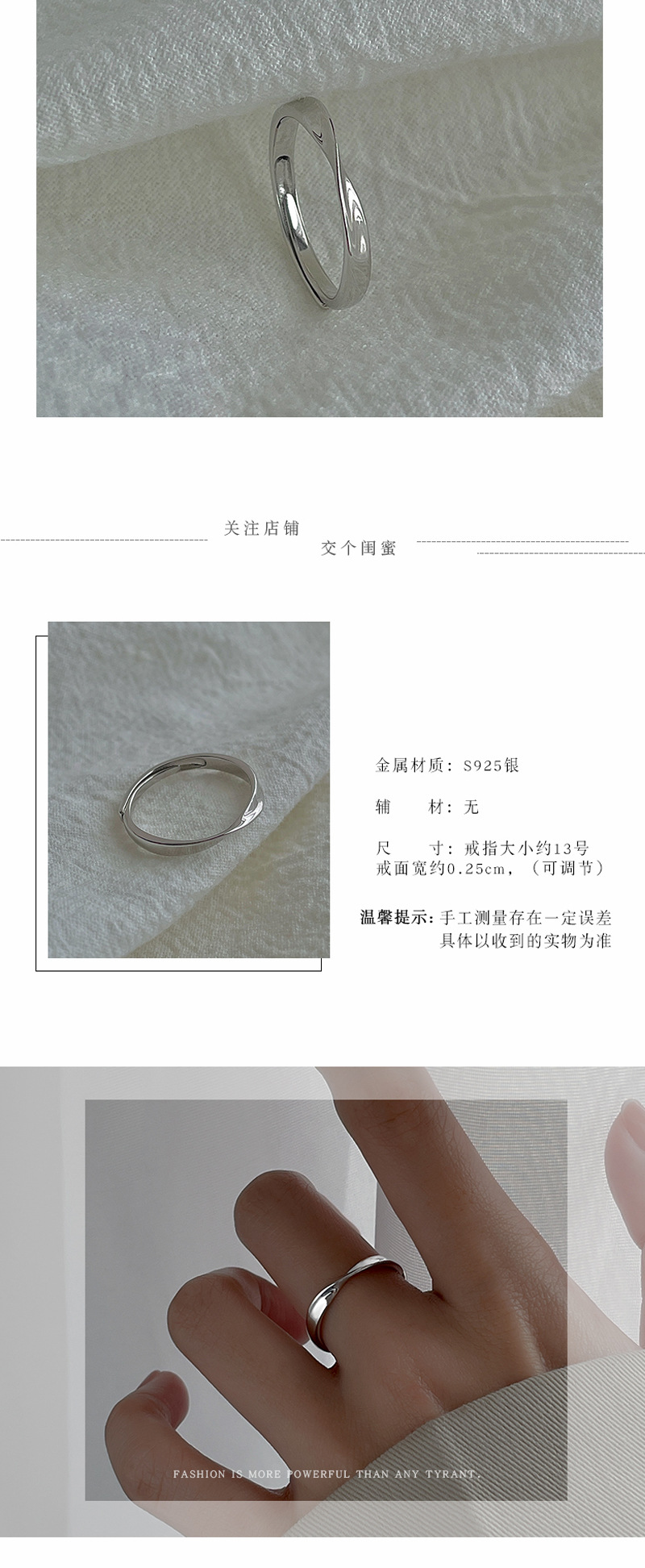 S925镀银饰莫比乌斯环单戒指女小众设计素圈高级感轻奢冷淡风指环