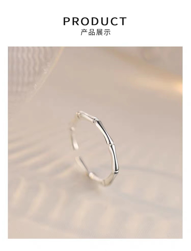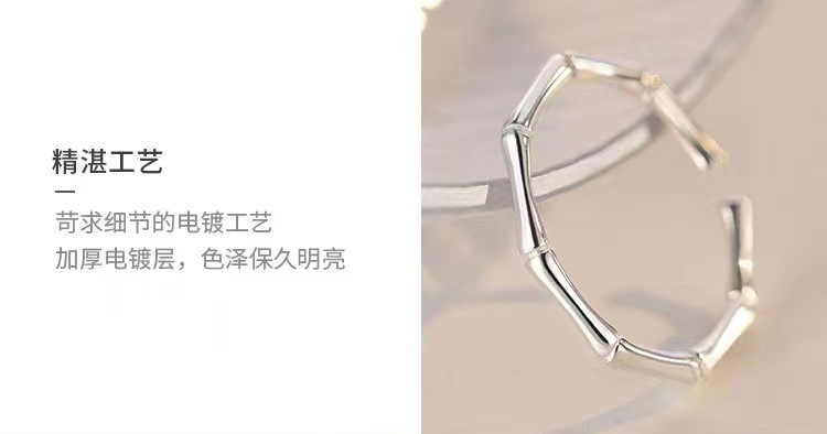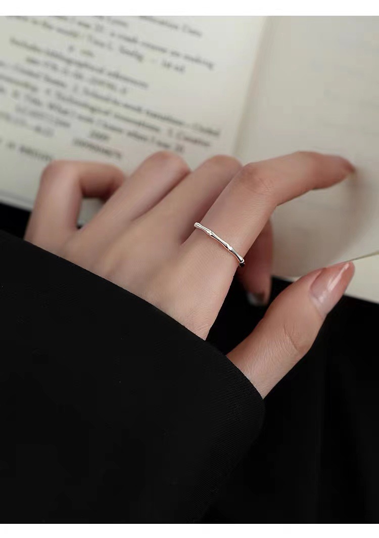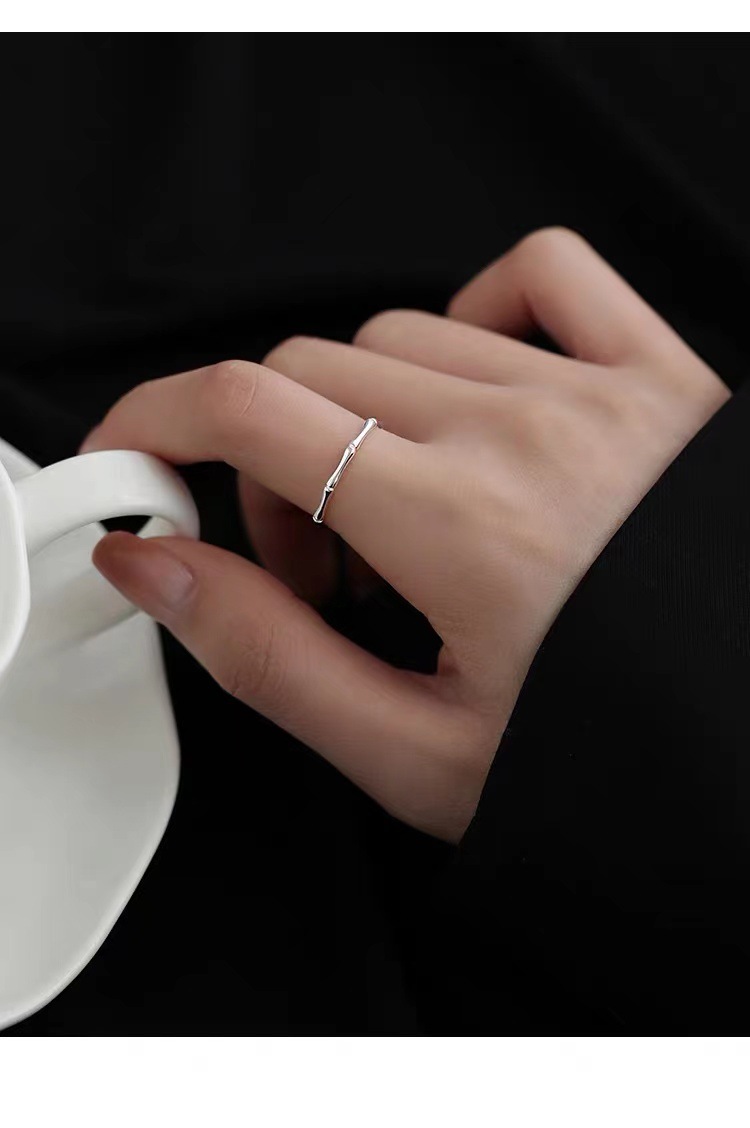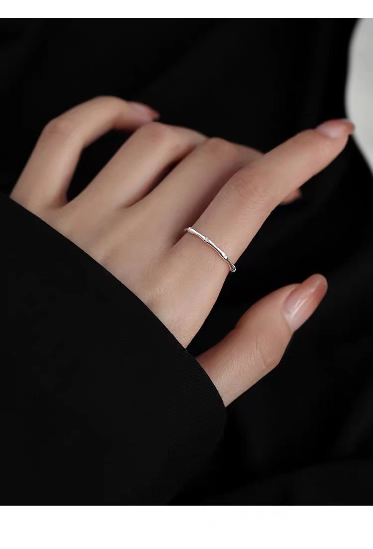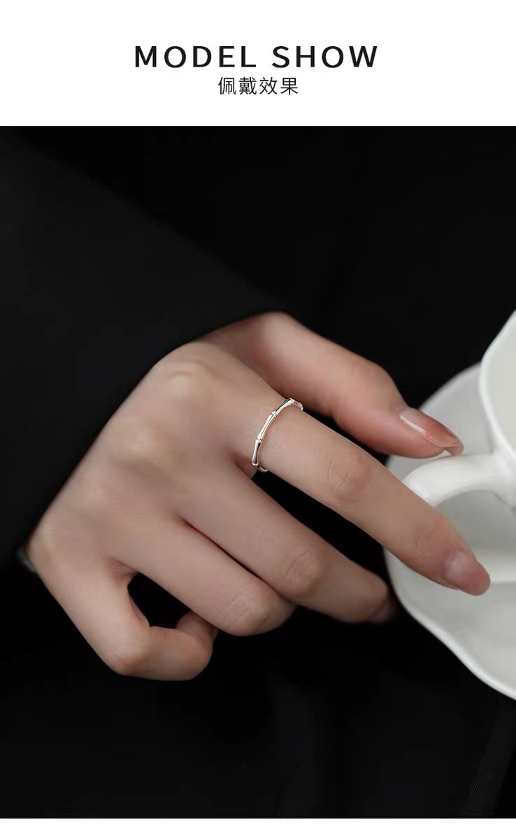 925镀银竹节戒指女素圈食指戒小众高级感尾戒轻奢开口戒