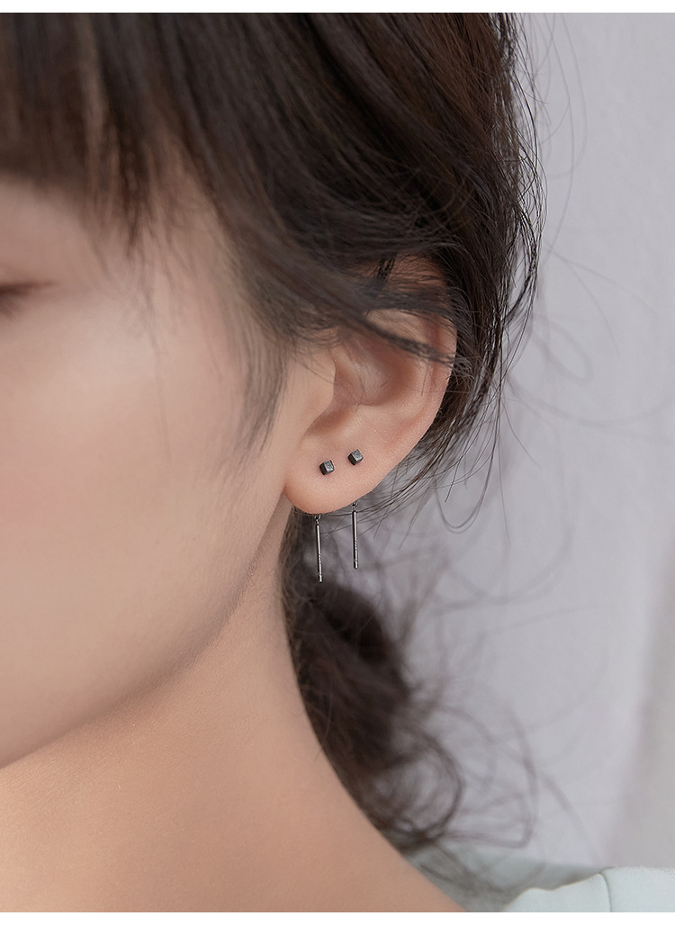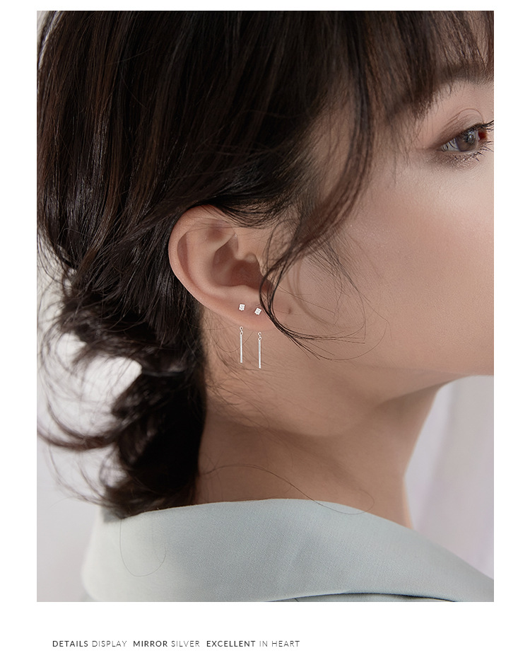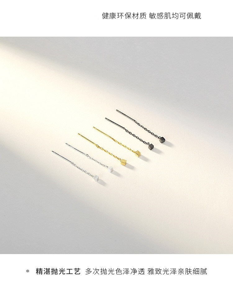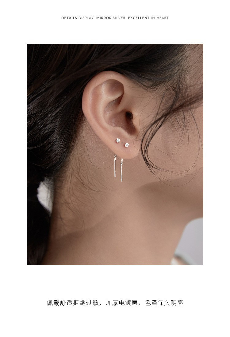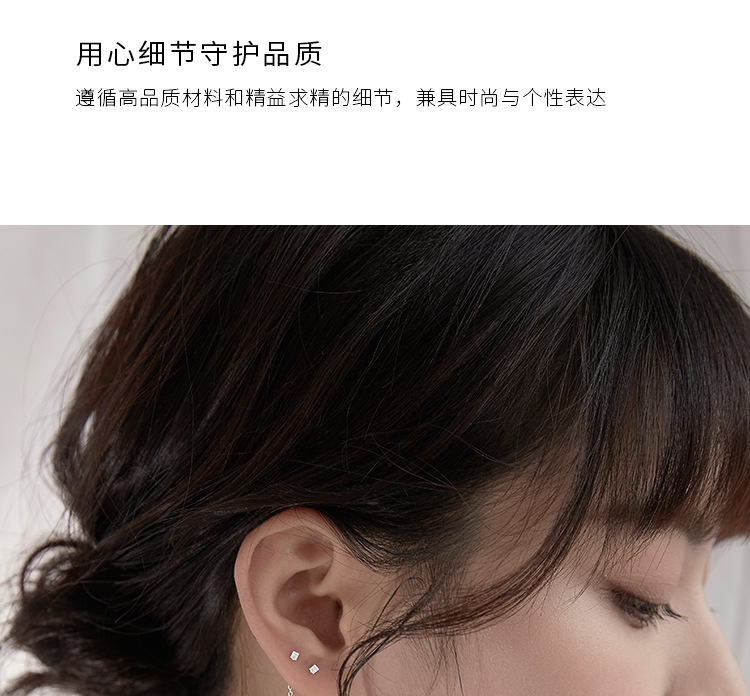 925纯银针耳钉女简约冷淡风小巧方块睡觉不摘耳线气质潮耳环