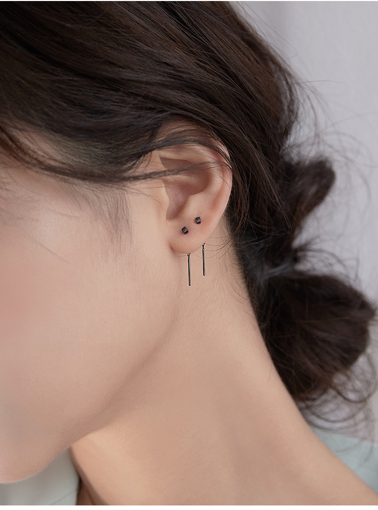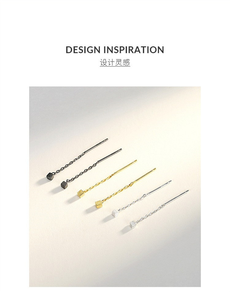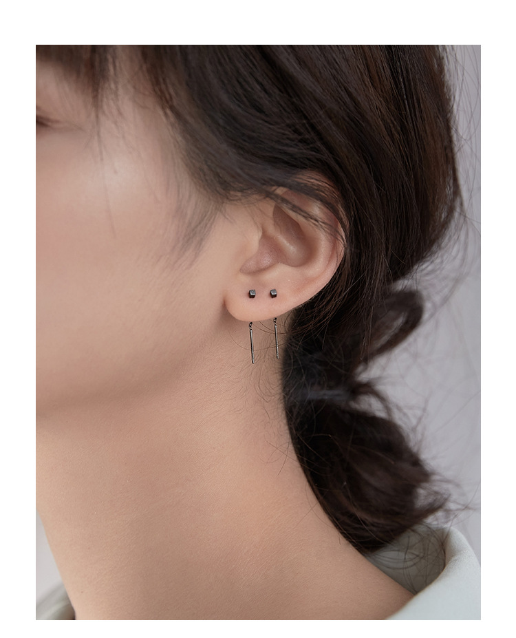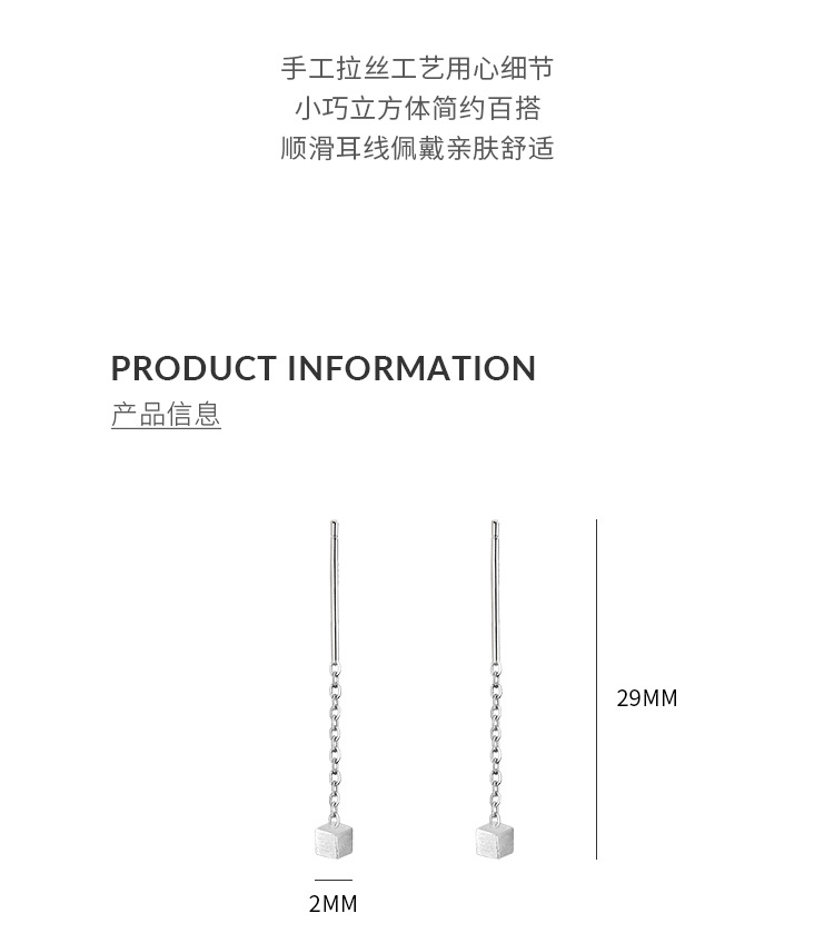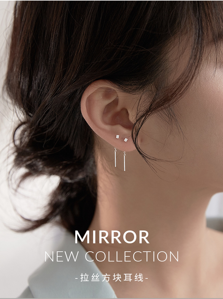 925纯银针耳钉女简约冷淡风小巧方块睡觉不摘耳线气质潮耳环